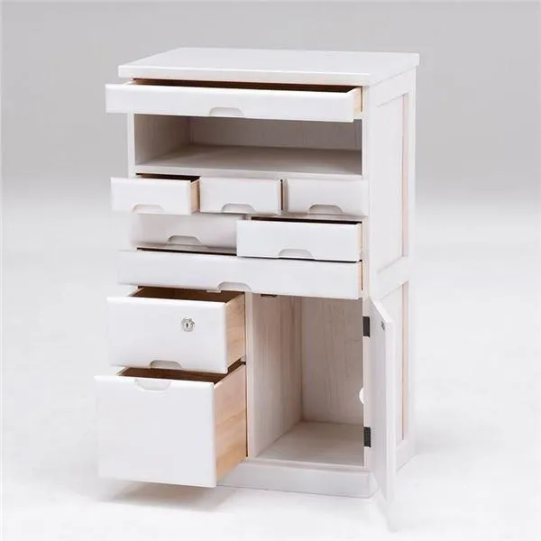 【鍵付 ウォッシュホワイト】 幅48×奥行32×高さ78cm 木製 引き出し付き 〔リビング ダイニング 廊下 玄関〕