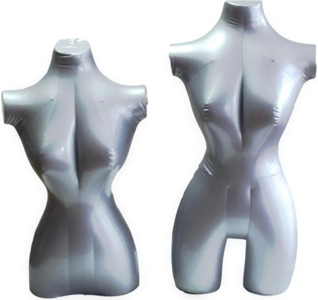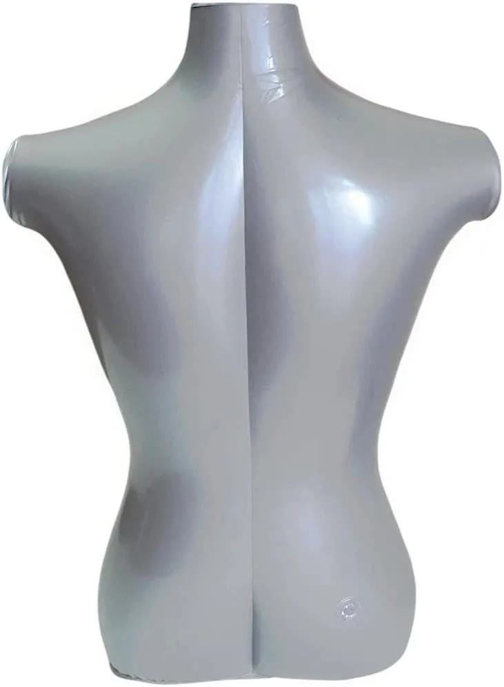 【商品紹介】 シルバーのトルソー、バスト94cm、ウエスト76cm、ヒップ90cm、肩幅47cm、高さ90cm。 - バスト: 94cm - ウエスト: 76cm - ヒップ: 90cm - 高さ: 90cm - 肩幅: 47cm 空気注入式でコンパクトに収納できるビニールマネキンです。 洋服を即座に魅力的にディスプレイでき、販売促進にとても効果的です。 オークション、フリーマーケット出品では、初心者でも簡単にお客様の想像を掻き立てる魅力的な展示ができます。 編み物や縫製などでの出来栄えチェックや、ファッションの後ろ姿を客観視するのに効果的です。 首の部分に円形フックがついていますので、吊り下げてディスプレイすることもできます。