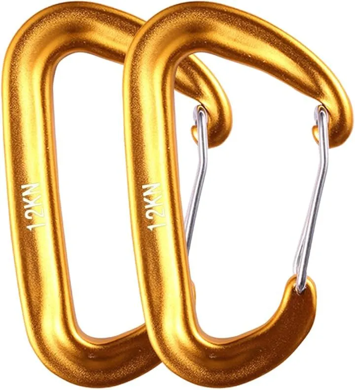 Eishin カラビナ カラビナフック 高強度 多機能 登山 キャンプ アウトドア ハンモック 航空アルミニウム製 タテ荷重 12KN 1200kg (ゴールドx2)
