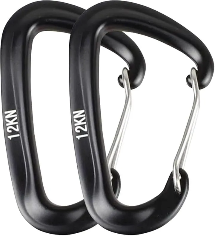 Eishin カラビナ カラビナフック 高強度 多機能 登山 キャンプ アウトドア ハンモック 航空アルミニウム製 タテ荷重 12KN 1200kg (ブラックx2)