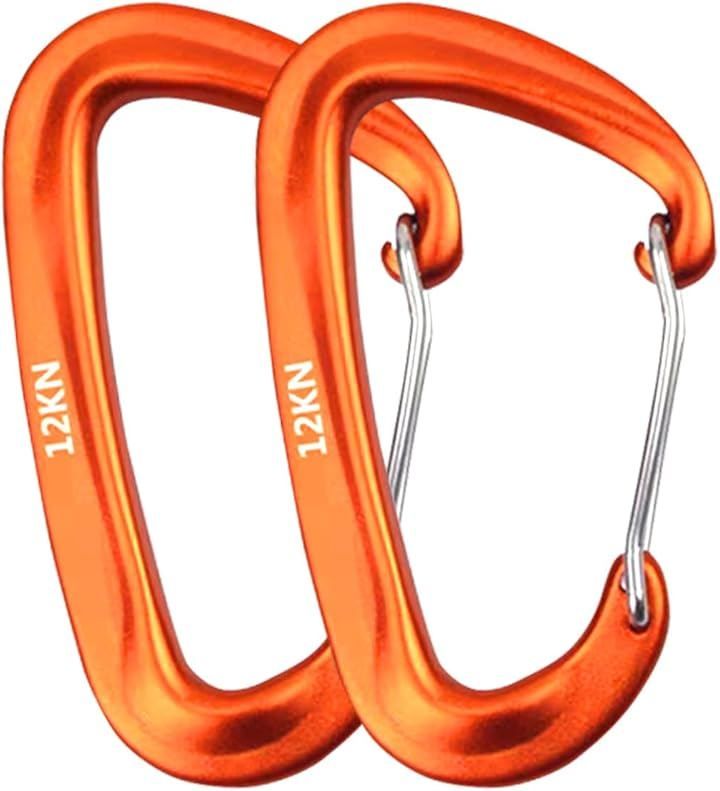 Eishin カラビナ カラビナフック 高強度 多機能 登山 キャンプ アウトドア ハンモック 航空アルミニウム製 タテ荷重 12KN 1200kg (オレンジx2)