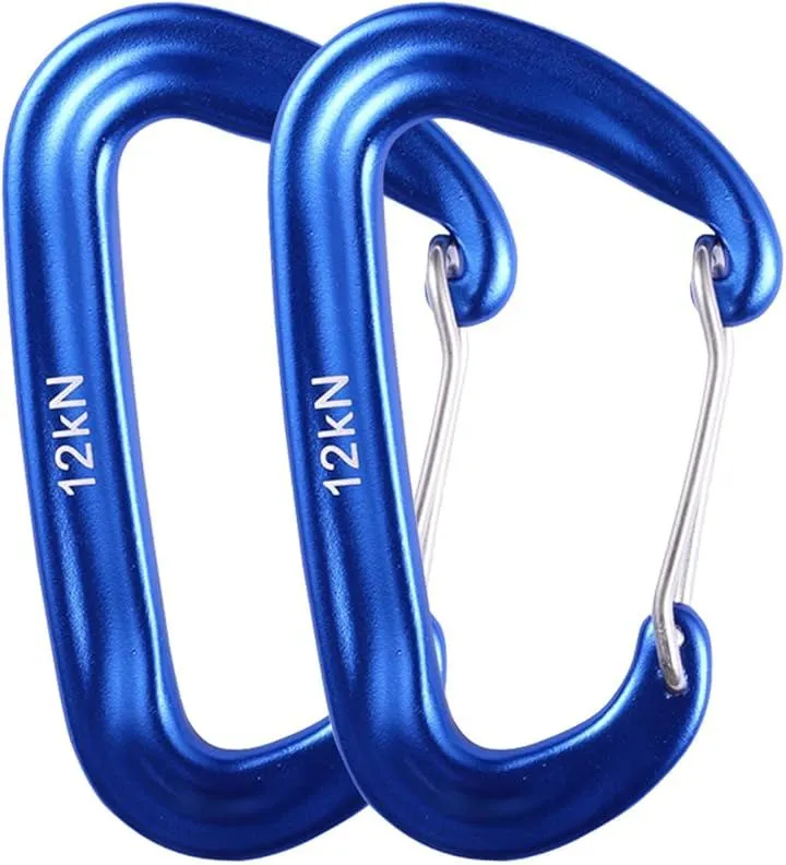 Eishin カラビナ カラビナフック 高強度 多機能 登山 キャンプ アウトドア ハンモック 航空アルミニウム製 タテ荷重 12KN 1200kg (ブルーx2)