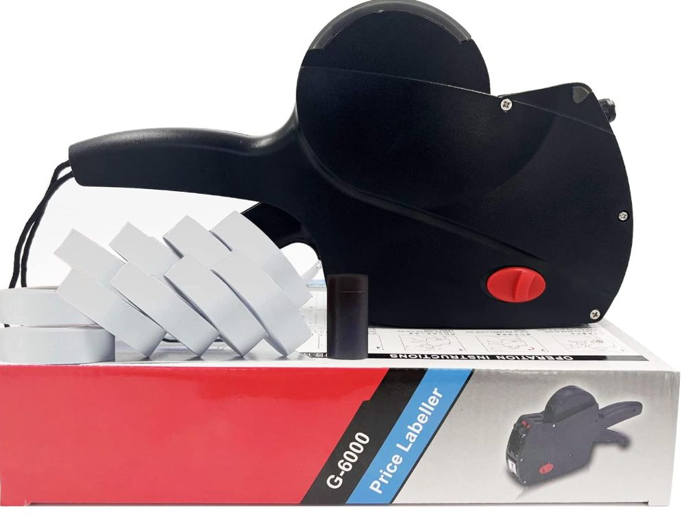 【LAIHUA】G-6000 ハンドラベラー プライスガン 業務用 店舗用 本体 ラベラー ラベルマシン 機械 シール 2ライン プライスタグ プライスタグキット付き ブラック 260224W004