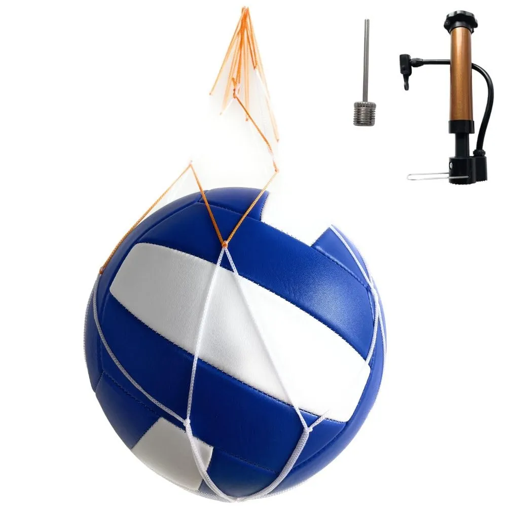 ASPALAND バレー ボール 5号 練習 球 初心者 レクリエーション 向き 部活 エア ポンプ ネット 付 ブルー&ホワイト