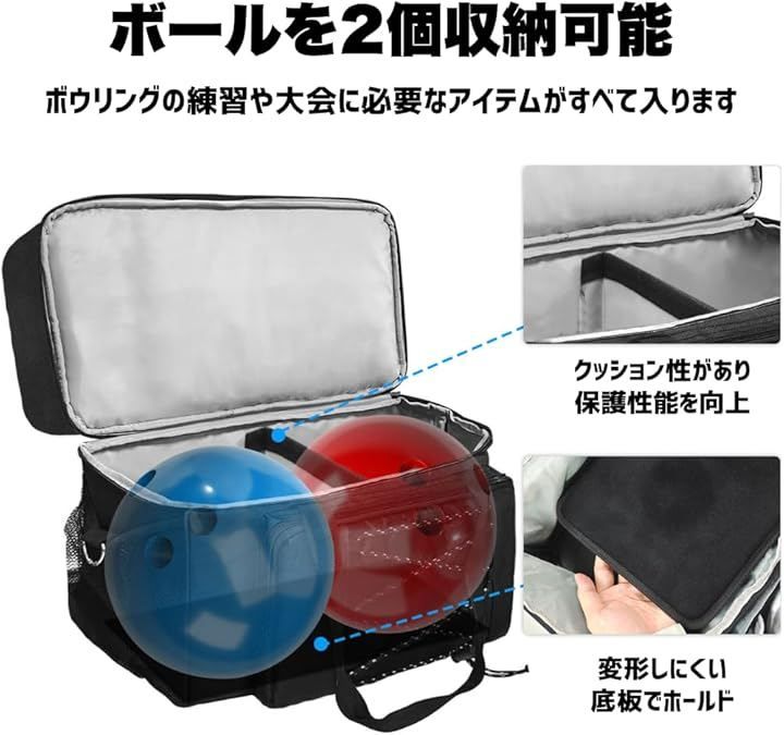ボウリングの練習や大会に必要なアイテムがすべて入るため、荷物をまとめたい方に最適。