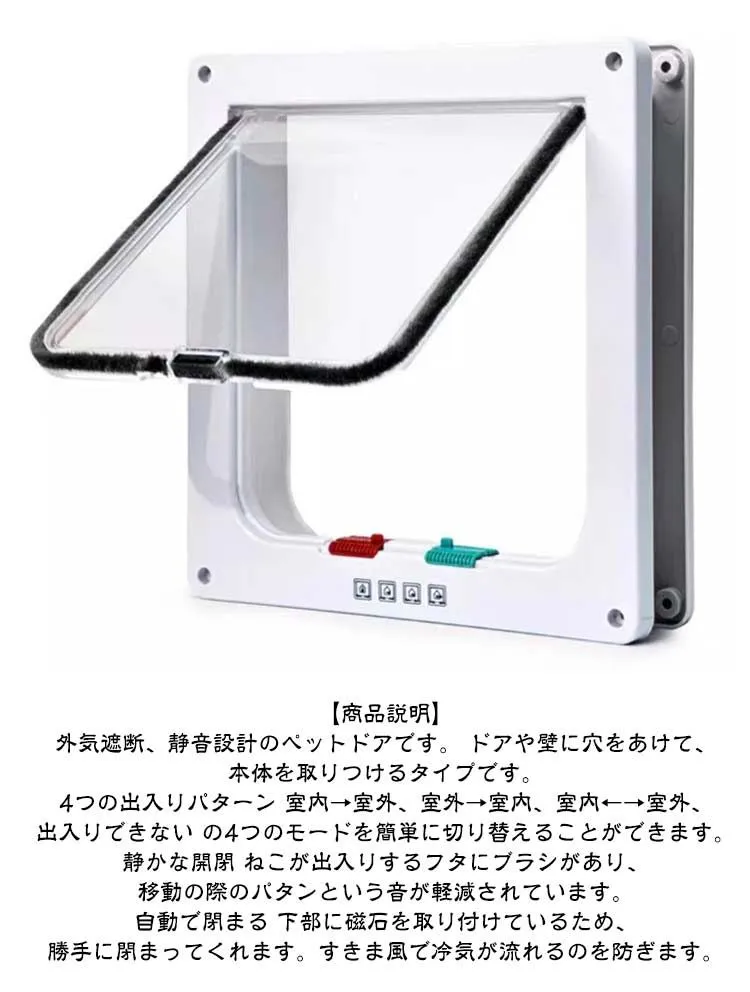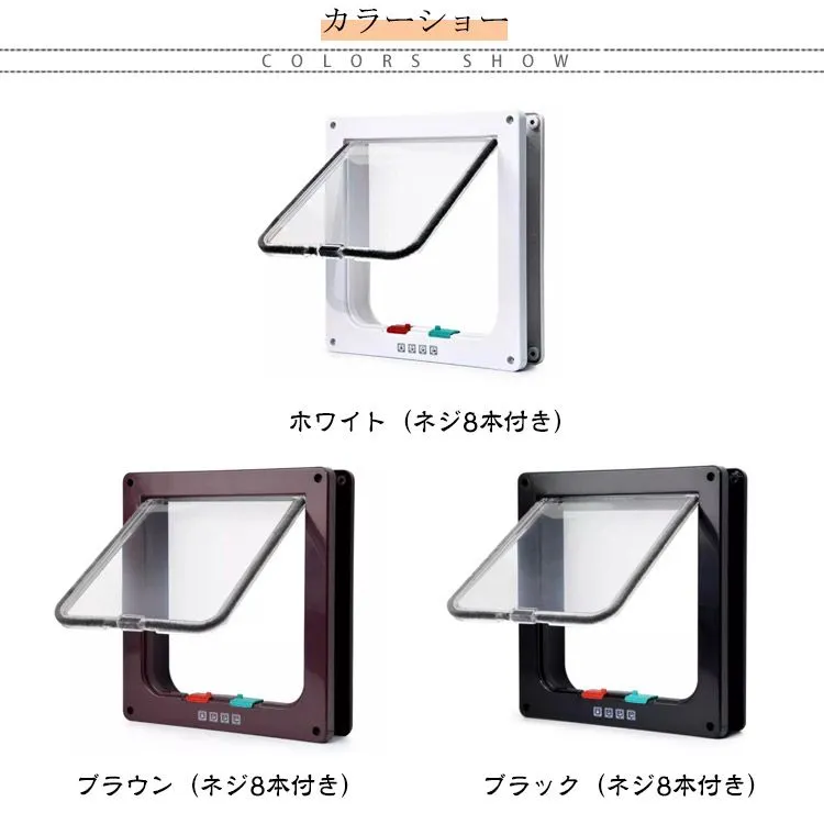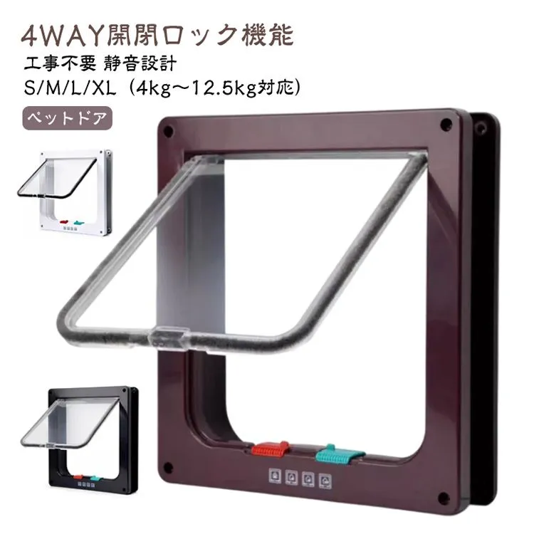 ペットドア 工事不要 取り付け 引き戸 後付け ネコドア キャットドア キャット扉 猫 ドア 猫扉 出入り口 ペット用ドア 4WAY 開閉ロック機能 静音 薄型 取り付け 猫用 犬用 小型犬 暖房 冷#inf11232
