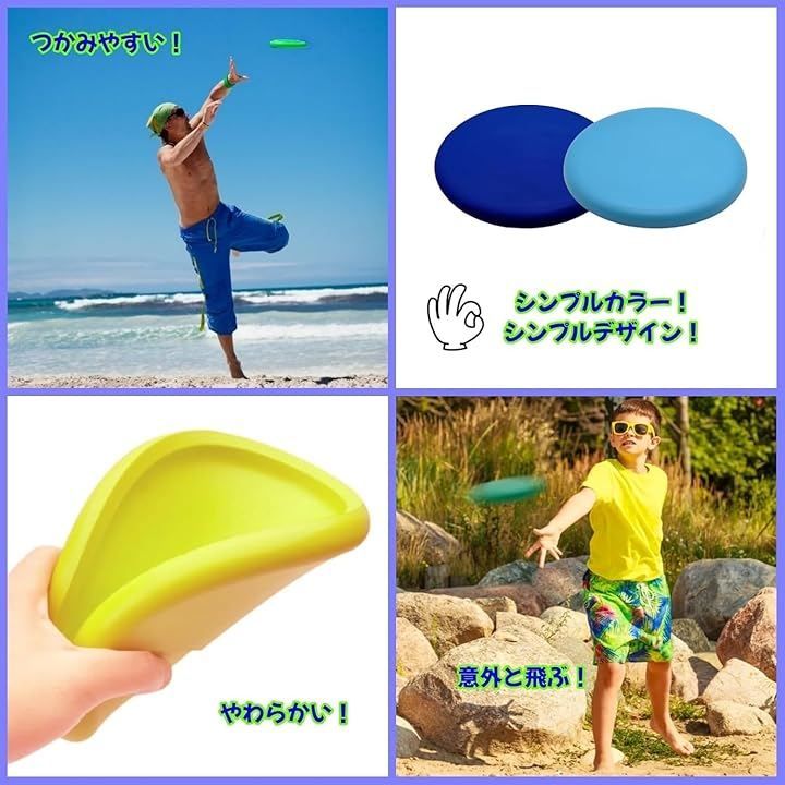 フライングディスクは柔らか素材だから当たっても大丈夫。痛くない。軽量で持ちやすいから小さいお子様でも簡単に飛ばすことが出来る、お子様から大人まで楽しく、気軽に遊べるアイテムです。