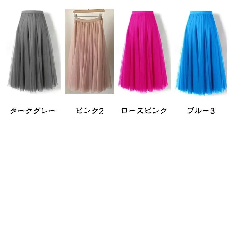 スカート チュールスカート ロングスカート フレアスカート マキシ丈 ミモレ丈 ひざ下 ボリューム ふんわり ダンス レディース 大人 オールシーズン 春 秋 ボトムス