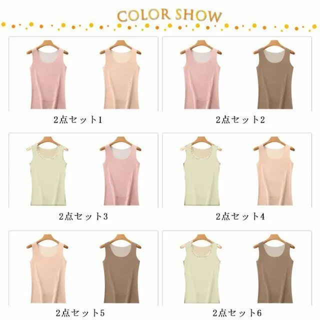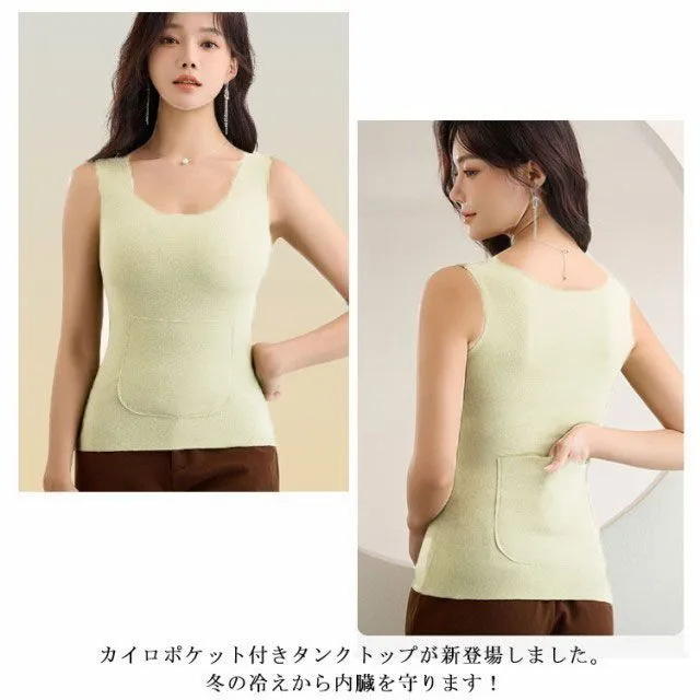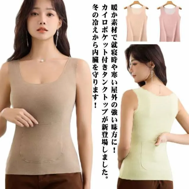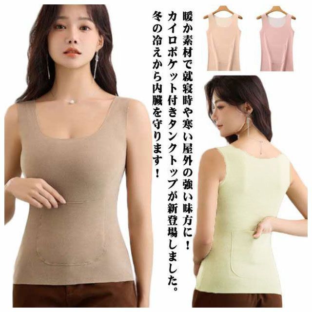 タンクトップ レディース インナー 2枚組 冬用 秋冬 ノースリーブ ルームウェア 温活 両面起毛 カイロポケット付き あったか M L XL 2XL 3XL