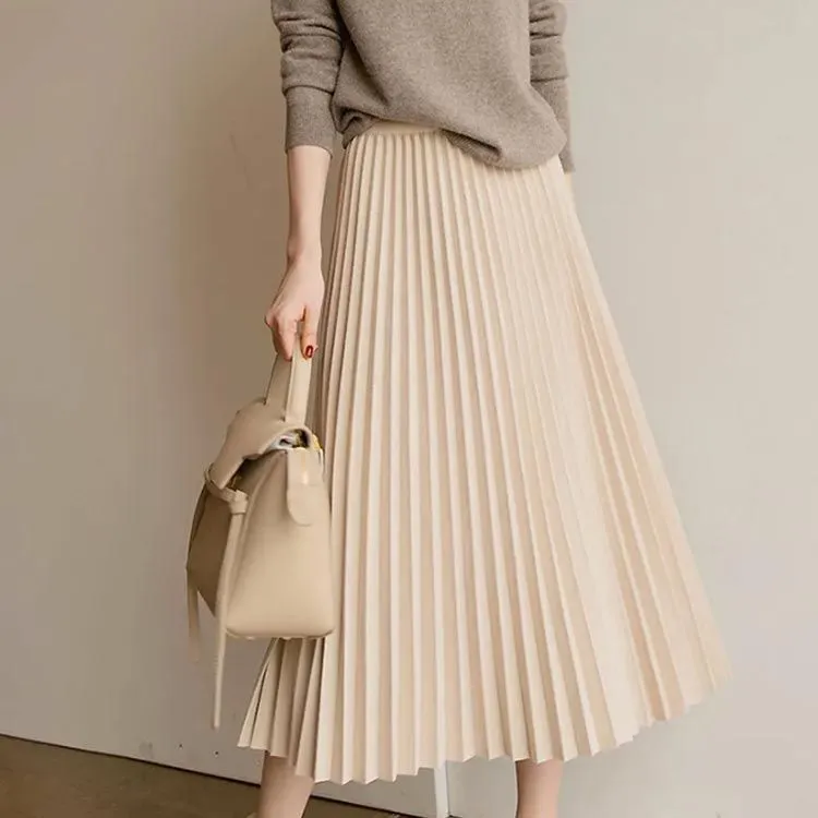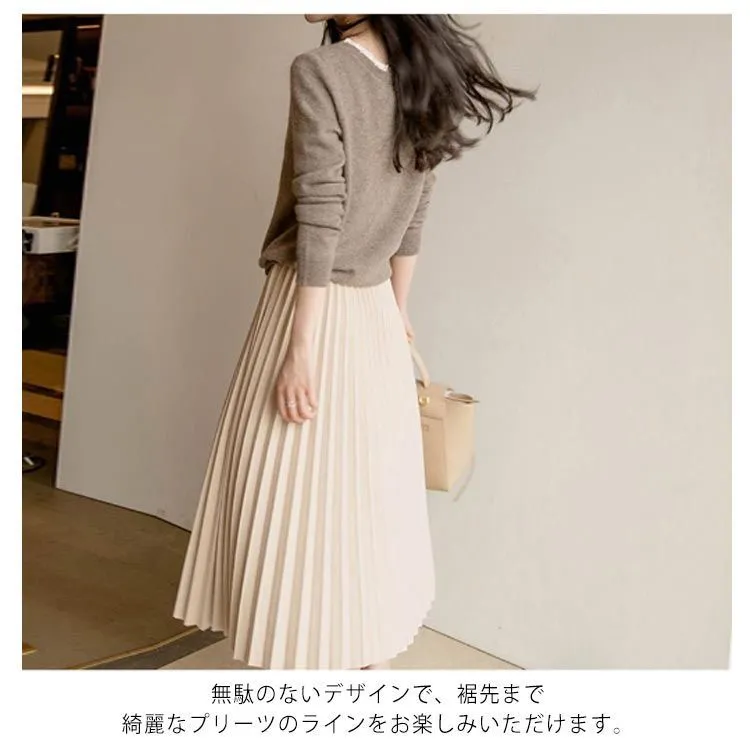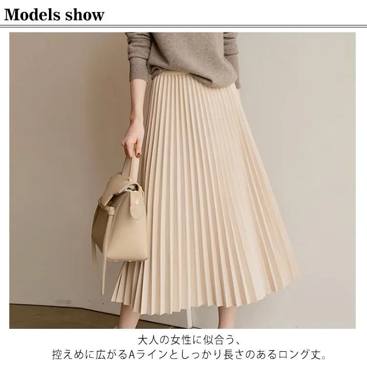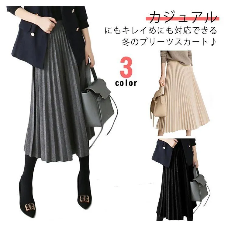 スカート プリーツスカート ロングスカート ミモレスカート Aラインスカート フェルトスカート ウエストゴム 大きいサイズ 秋冬 冬 レディース 新作