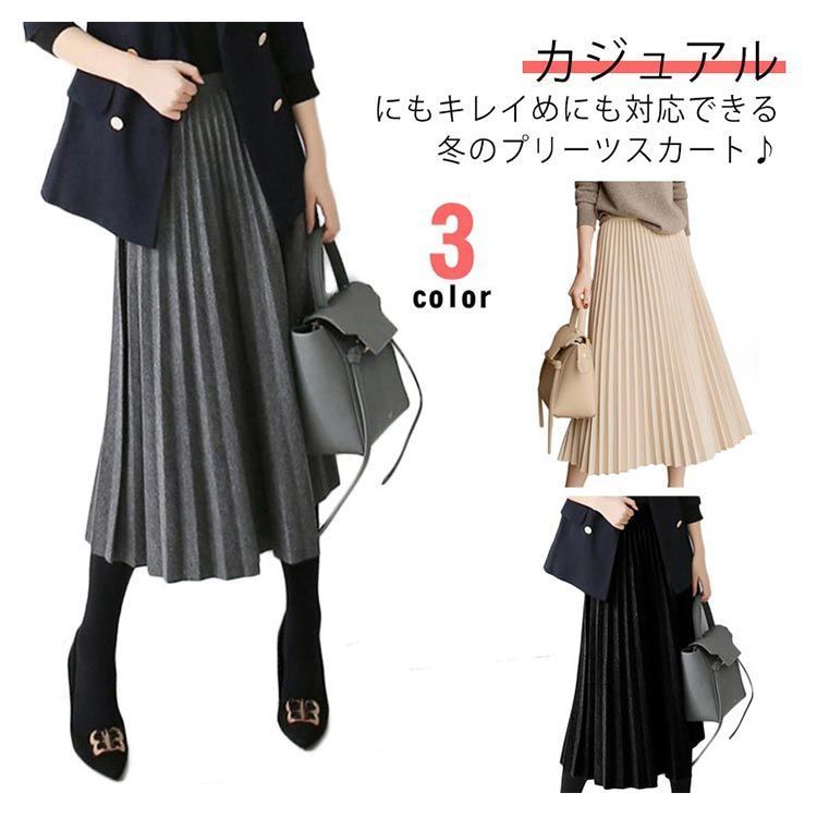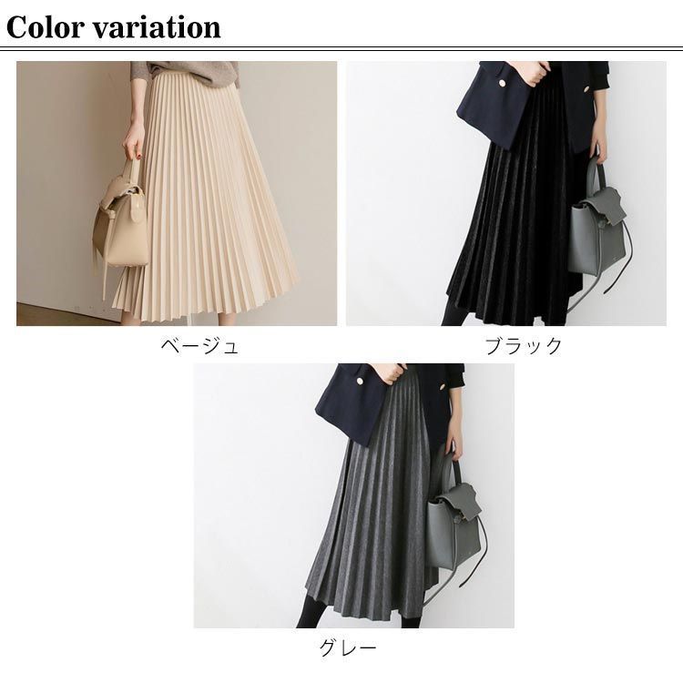 ■沖縄・離島は配送料が異なります。ご購入前にコメントをお願いいたします。 商品詳細 サイズ S / M / L / XL 素材 ウールタッチ カラー ブラック / グレー / ベージュ --- 商品の特徴 カジュアルにもキレイめにも対応できる冬のプリーツスカートです。 大人の女性に似合う、控えめに広がるAラインとしっかり長さのあるロング丈。 足元に向かってストンと流れる上品なシルエットで、着痩せ見え効果も抜群です。 無駄のないデザインで、裾先まで綺麗なプリーツのラインをお楽しみいただけます。 ウエストは、着用が楽ちんな平ゴム一周仕様となっています。 --- ご注意 ※サイズ表の実寸法は商品によって1-3cm程度の誤差がある場合がございます。