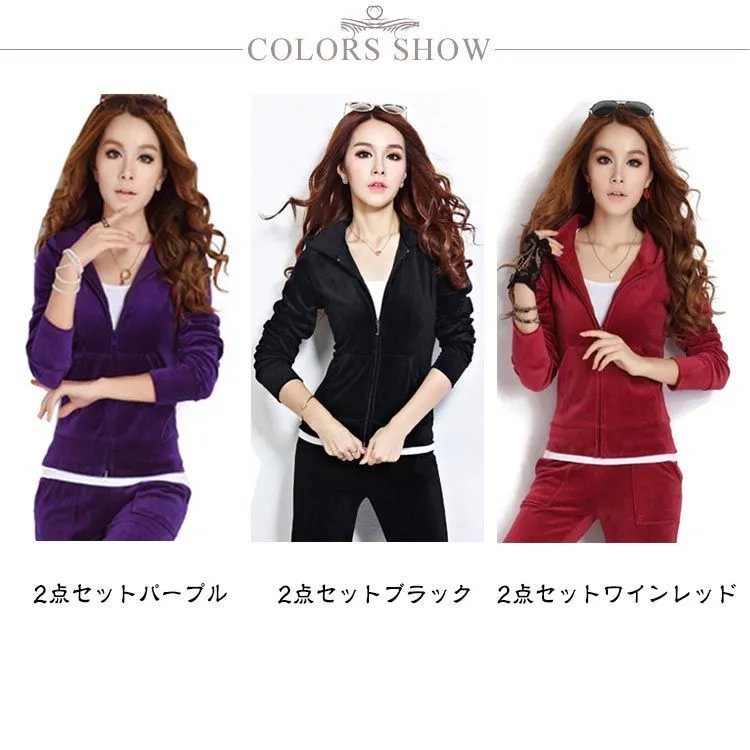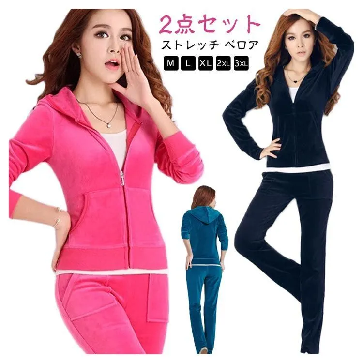 ジャージ レディース 上下セット スウェット ルームウェア ベロア スーパーストレッチ ベルベット 長袖 パジャマ パーカー ジュニア ガールズ ダンス ウェア セットアップ