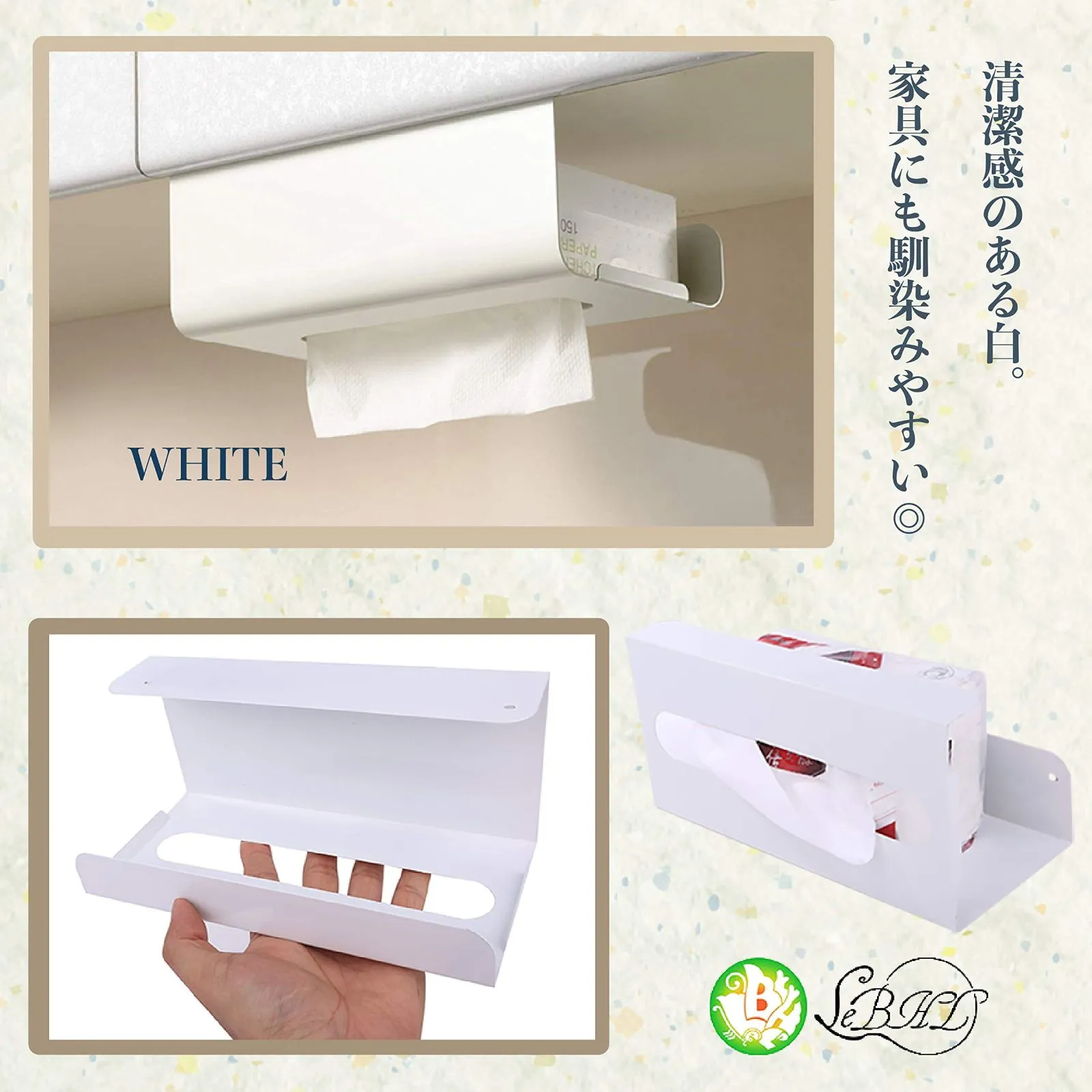 ティッシュ ハンガー ティッシュペーパー 収納 キャビネット キッチンペーパー 吊り下げ 壁掛け ラック ホルダー 台所 ペーパータオル (ホワイト) ルボナリエ