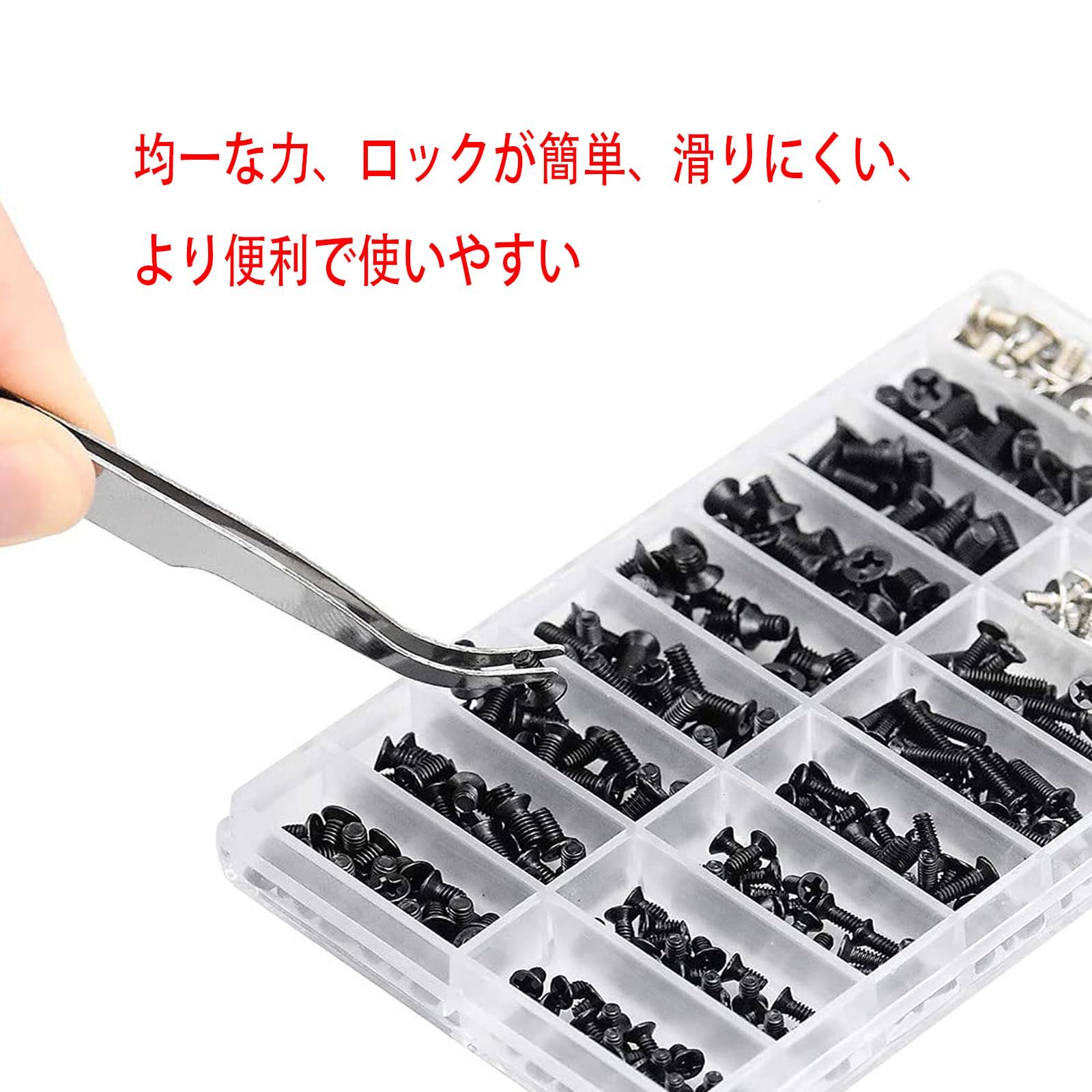 【内容】ノートPC用ネジ M2 M2.5 M3 + HDD M.2 SSD固定用平ネジセット 収納ケース付き 交換用ノートパソコンねじ 355本入り。人気のサイズ: M2、M2.5、M3 合計355本ねじ 入。ドライバー、ピンセットを付ける。