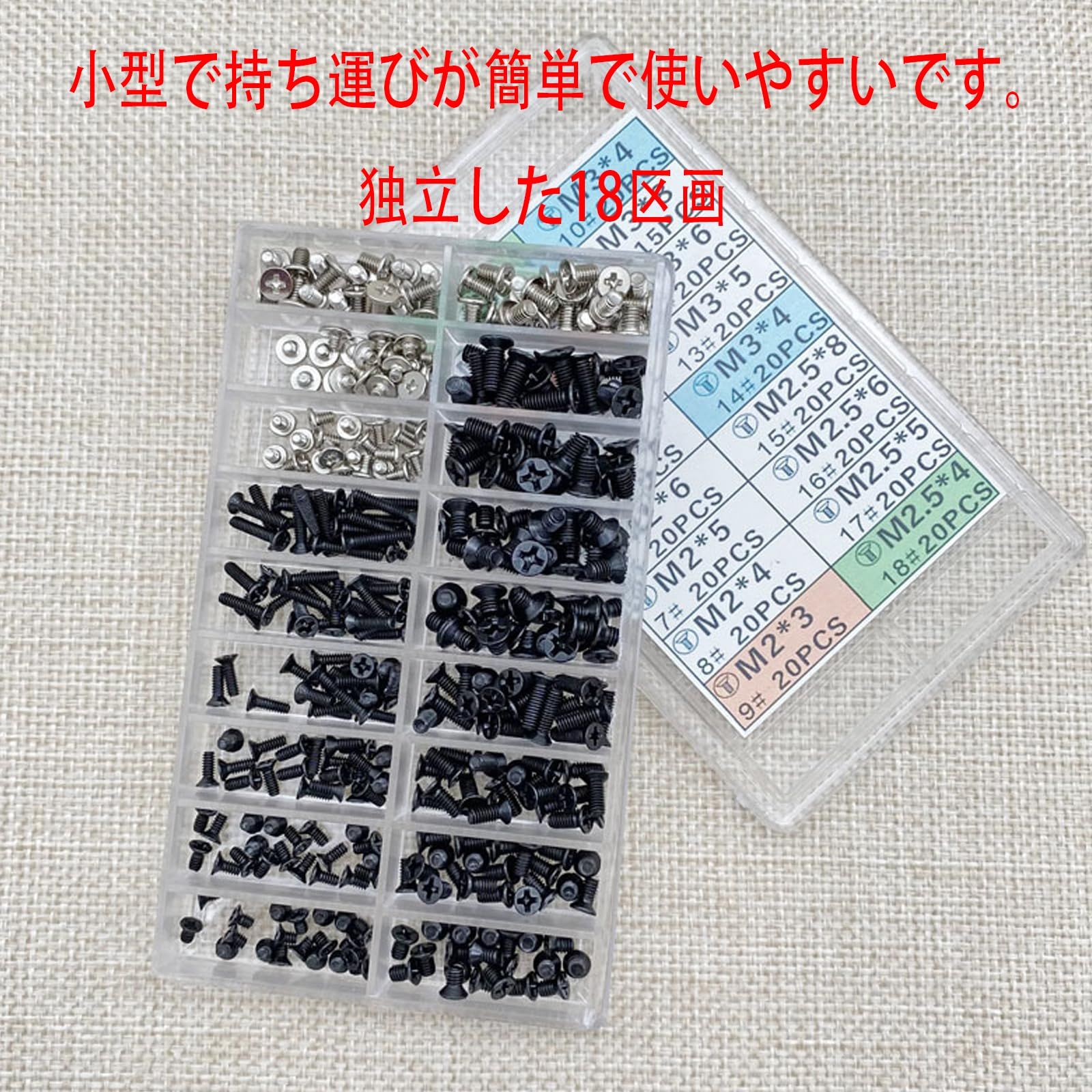 【収納ケース付き】小型で持ち運びが簡単で使いやすいです。独立した18区画、 小型で持ち運びが簡単で使いやすいです。保管にとても便利です。