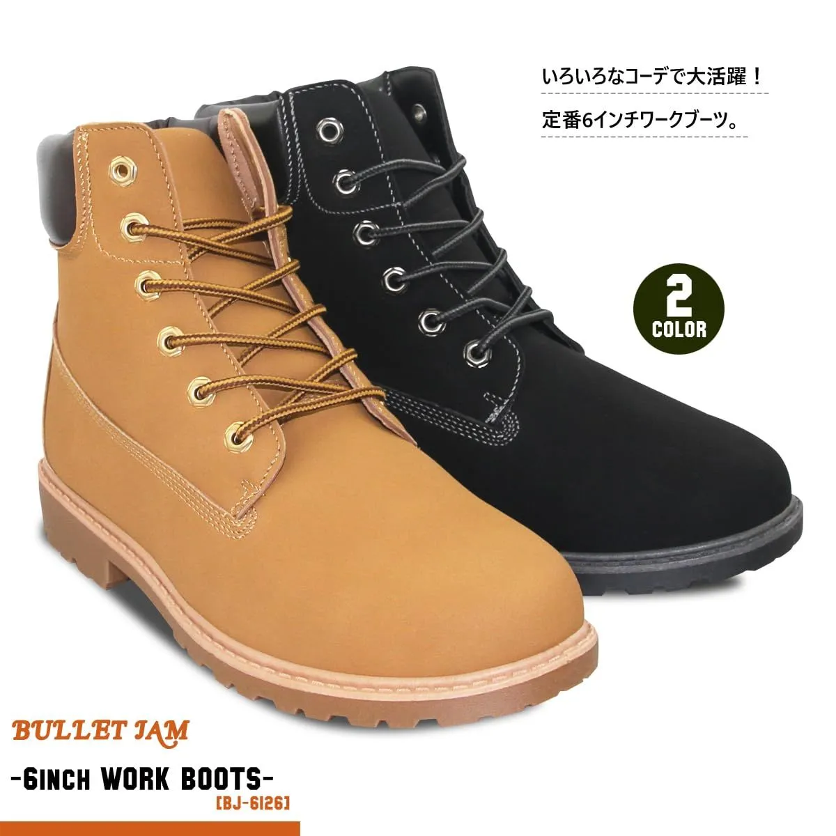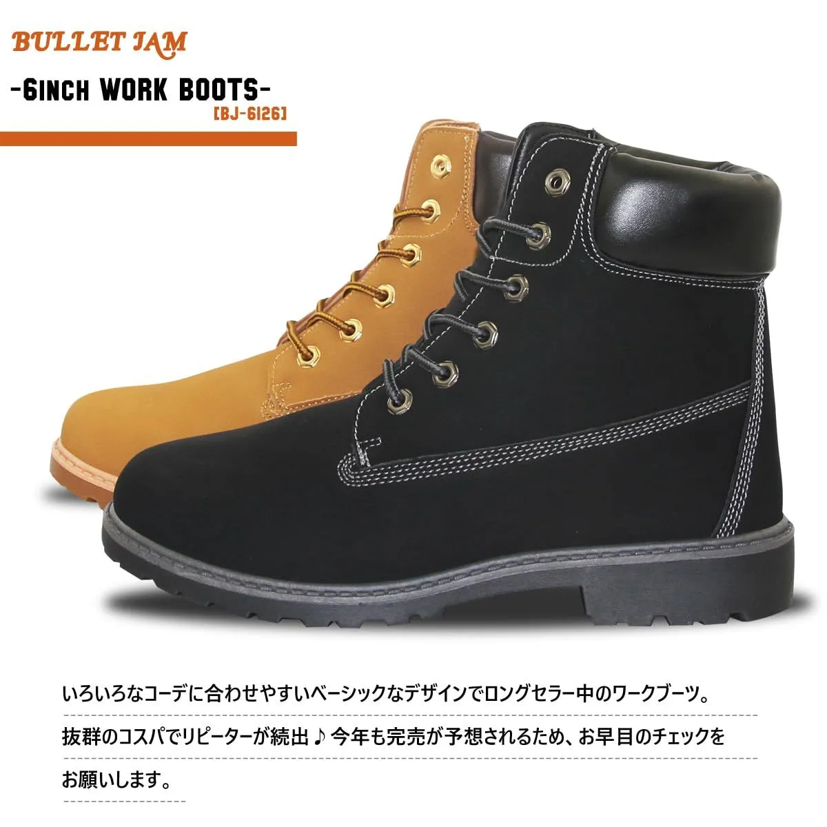 [BULLET JAM(バレットジャム)]ワークブーツ メンズ ブーツ B系 HIP-HOP イエローブーツ 6インチ