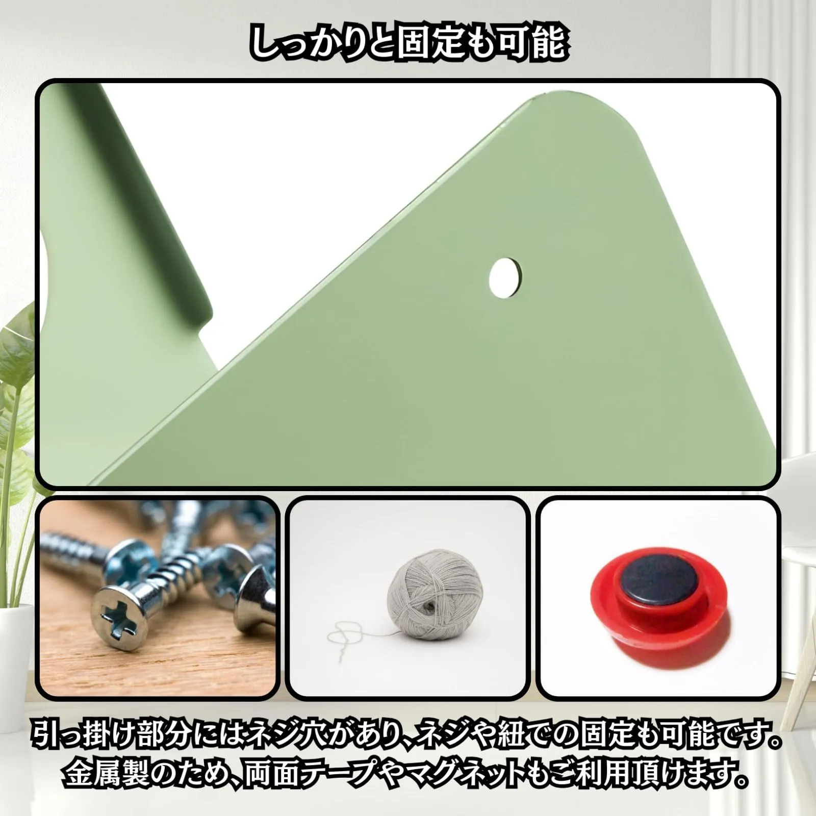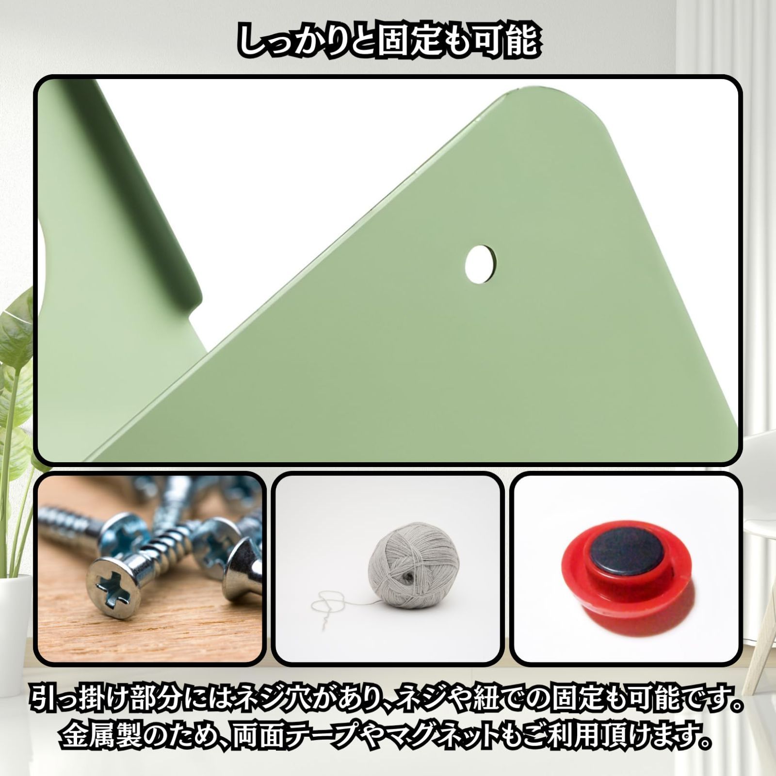 【しっかりと固定も可能】引っ掛け部分にはネジ穴があり、ネジや紐などでしっかりと固定することも可能です。両面テープ等でも固定できるほか、金属製のため、マグネットもご利用頂けます。