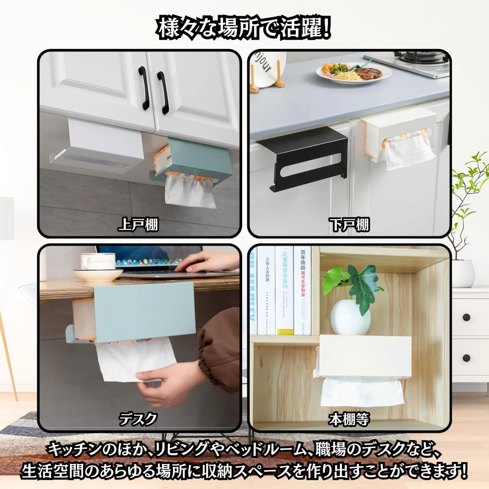 ティッシュケース 吊り下げ ペーパータオルホルダー 壁掛け 台所 キッチンペーパーホルダー 洗面所 テーブル下 Charmoon 棚 (ホワイト)