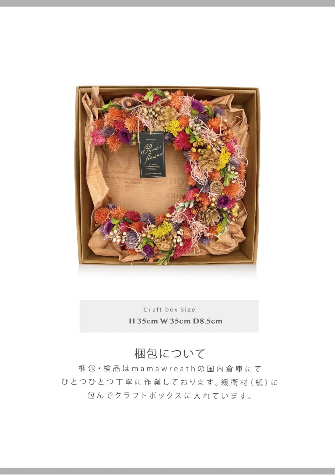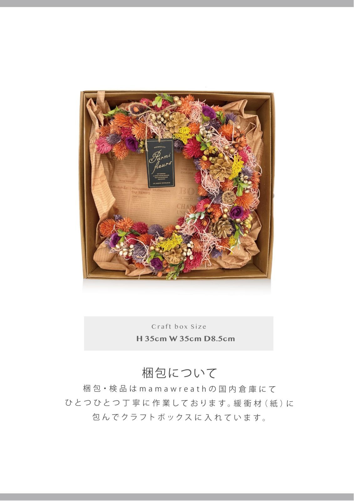 ■ 天然素材を使用しているため、木屑などが落ちる場合がございます。 箱や袋から取り出す際に木屑やラメが落ちる場合がございます。 木屑やラメが落ちても問題のない場所、片付けや掃除しやすい場所であけてください。 後ろの部分に麻紐が付いております、ひっかけて飾ってください。