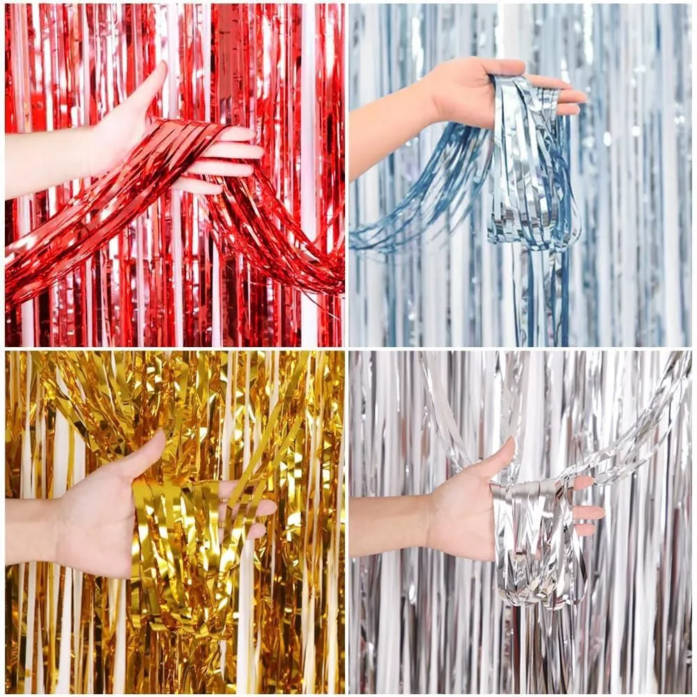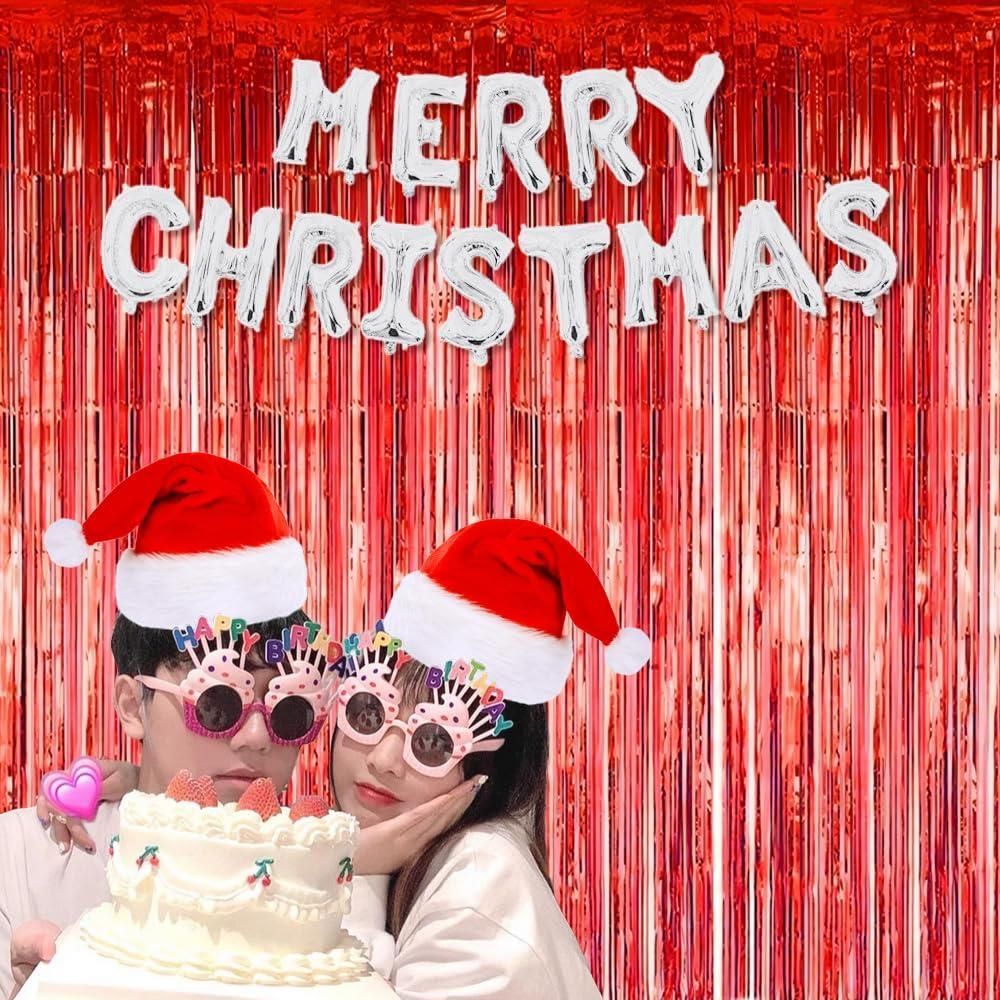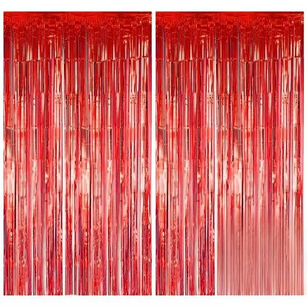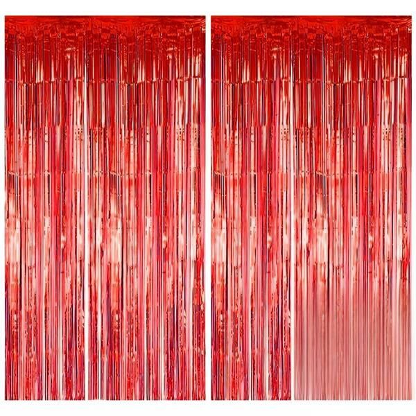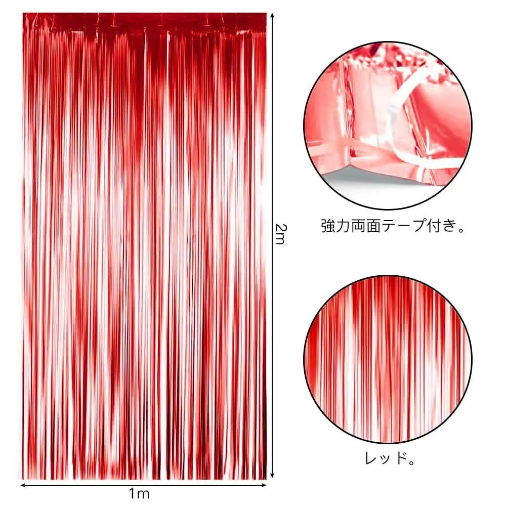 Color:レッド サムコス タッセルカーテン 2個セット 100cm*200cm キラキラ フリンジカーテン 背景 明るい光沢 誕生日 結婚式 忘年会 パーティー 装飾 華やかな金属感 お部屋の装飾 (レッド)