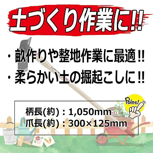 千吉 くわ 改良鍬 柄長1050mm 土づくり作業用 刃物鋼 椎柄 奥行12×幅30cm