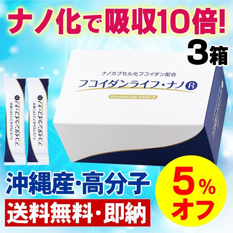 【5%オフ】フコイダンライフ・ナノR✕3箱セット 沖縄もずくフコイダン(高分子) 緑茶カテキン(EGCG) 長命草 fucoidan
