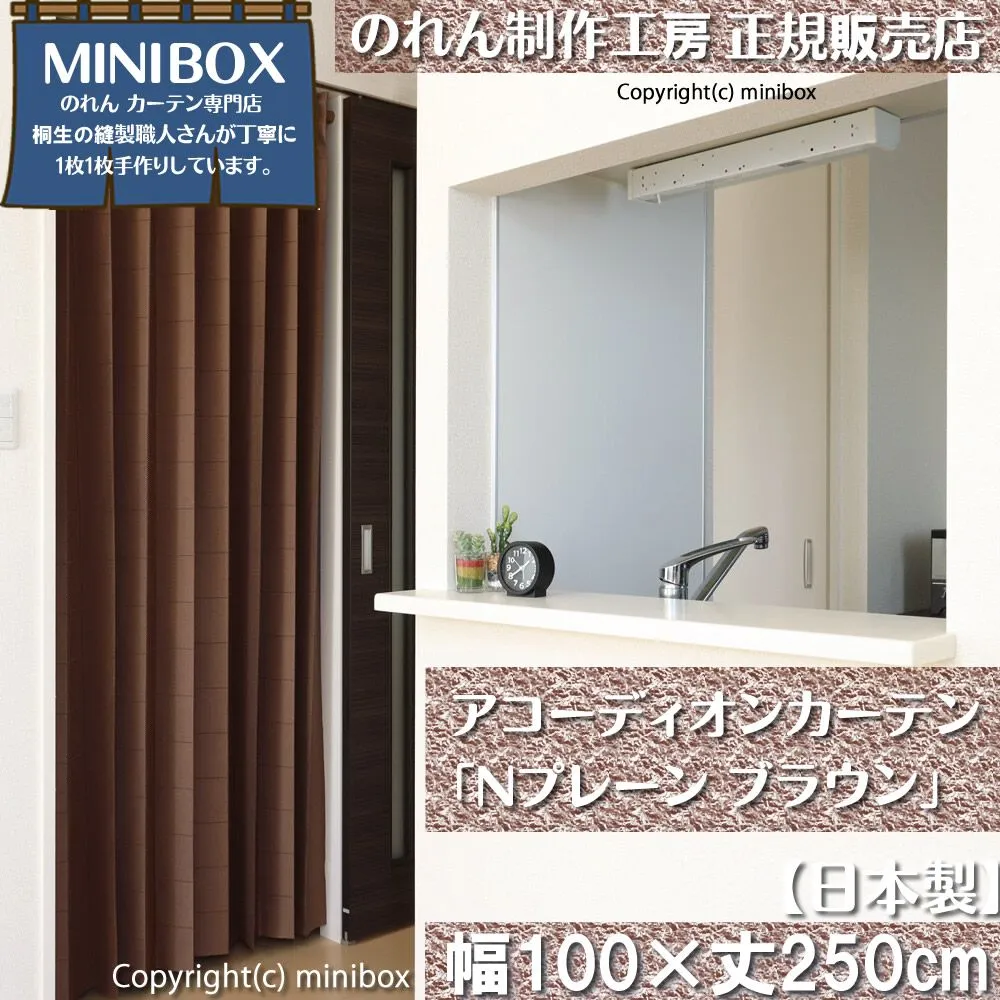 【MINIBOX のれん制作工房 正規販売店】アコーディオンカーテン「Nプレーン ブラウン」150x200cm【日本製】【匿名配送らくらくメルカリ便 全国送料無料】目隠し 間仕切り のれん 暖簾 模様替え 和柄 和風 洋風 洋柄 省エネ