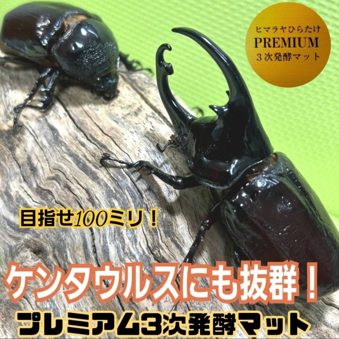 【羽化実績】 ヘラクレスヘラクレス182ミリ リッキー165ミリ ネプチューン155ミリ コーカサス127ミリ マルス131ミリ 国産カブト87ミリ ヘラクレスなどの外産はもちろん国産のカブトムシもギネスサイズがでています。 他にもヘラクレス亜種、シロカブト、ゾウカブトなどでも多数大型実績あります。 ミヤマクワガタやノコギリクワガタ、ヒラタクワガタ、オオクワガタ、ニジイロクワガタなどクワガタ全般もこのマットで大きくなったとの報告をたくさん頂いています。 クワガタでは特にミヤマクワガタではギネス級が羽化しています。 とにかく幼虫の食い付きがよくモリモリ食べます。 大型の成虫にするポイントは幼虫期間にどれだけたくさんの質の良い餌を食べさせることができるかです。 高カロリーで絶妙なバランスの栄養添加剤配合の「ヒマラヤひらたけプレミアム3次発酵マット」は幼虫の餌の中では最高峰です。 特にヘラクレスなど外産ブリーダーの方から好評でリピート注文をたくさん頂いています。 全国の昆虫ショップやカブトムシ、クワガタ専門店からも注目されお陰様で定期的に大量の注文を頂いています。 産卵マットに使うとメスが大量に卵を産みます。 ヘラクレスは1頭のメスが130個以上産んだ実績あります。 国産カブトムシでは1匹のメスが90個の産卵実績。 この発酵マットの愛用者にはビークワコンテストで何度も上位入賞されてる方もいます。 カブトムシ、クワガタの飼育を長年やってきて、マットも色々と実験を繰り返してきました。 試行錯誤した結果一番大きく元気に育ったのが「ヒマラヤひらたけプレミアム発酵マット」でした。 雑菌処理も完璧にやってありますので雑虫やコバエもわきません。