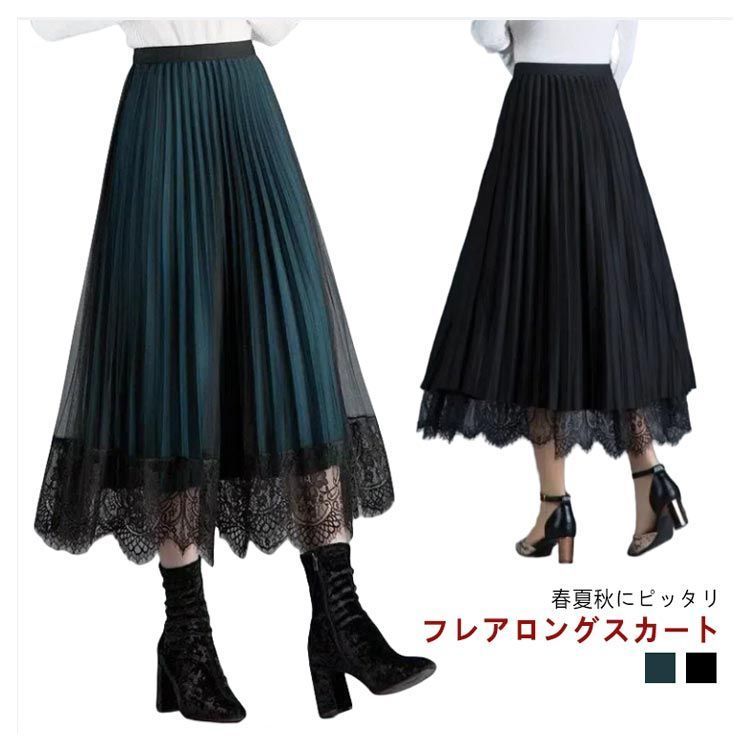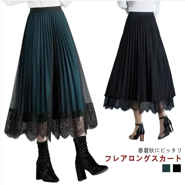 スカート チュールスカート フレアスカート ロングスカート マキシスカート 無地 メッシュ レディース ウエストゴム入 フレア Aライン ひざ下 膝下 ゆったり 大きいサイズ マキシ ロング