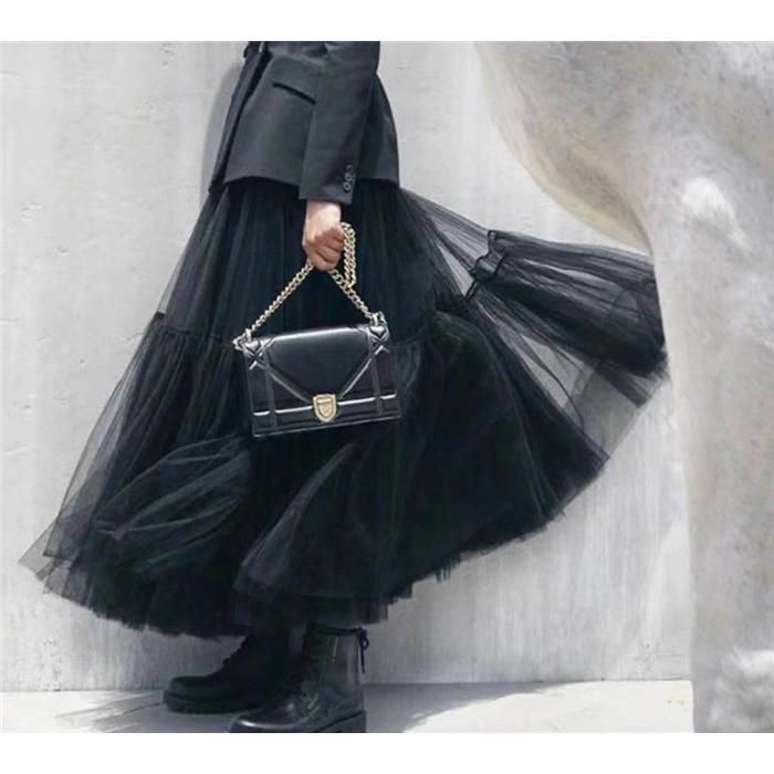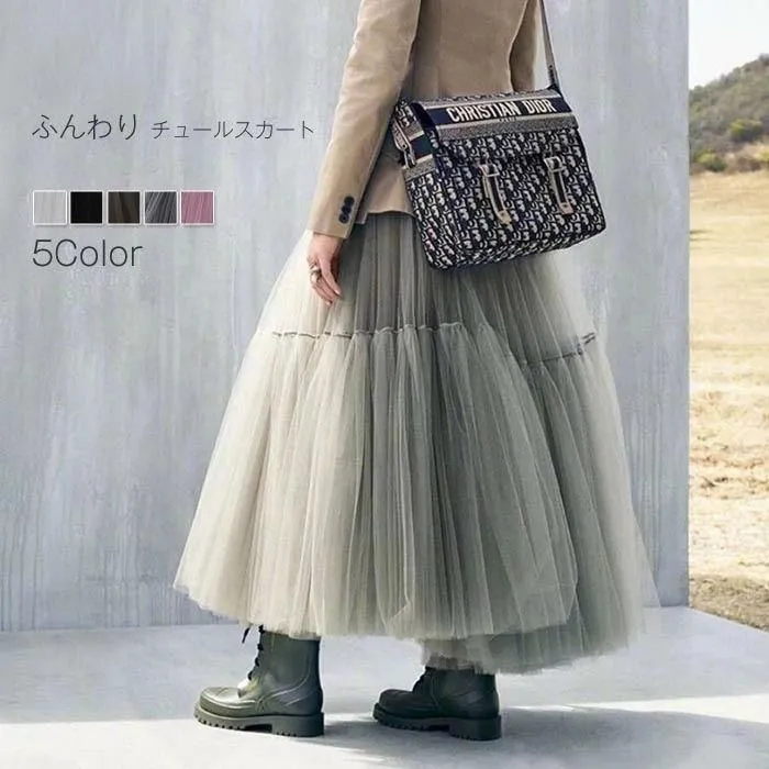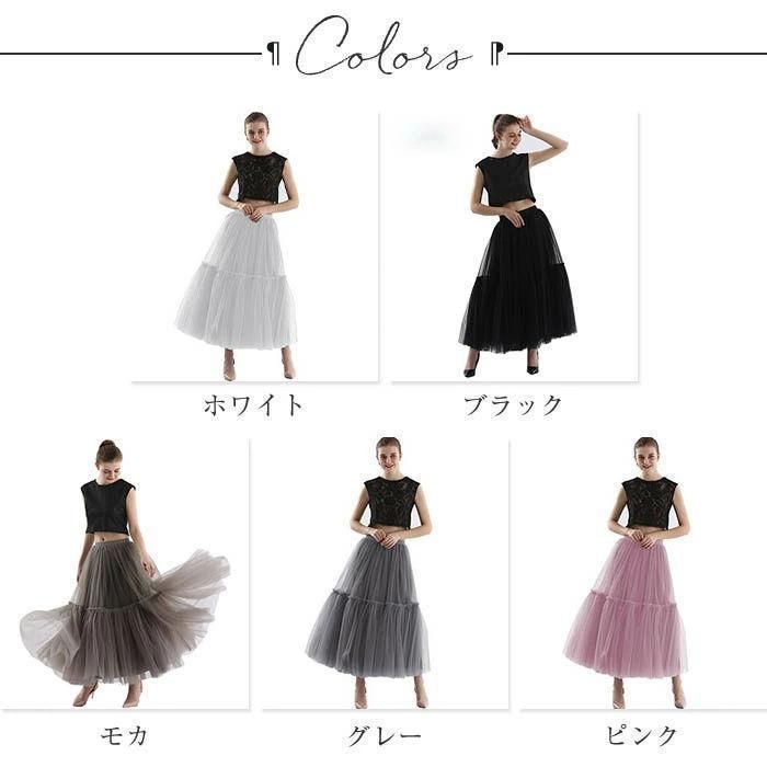 チュールスカート マキシスカート ロングスカート 黒 ネイビー 重ねチュール ボリューム ダンス 衣装