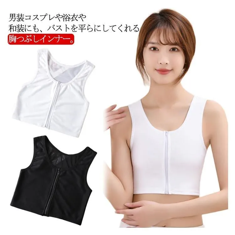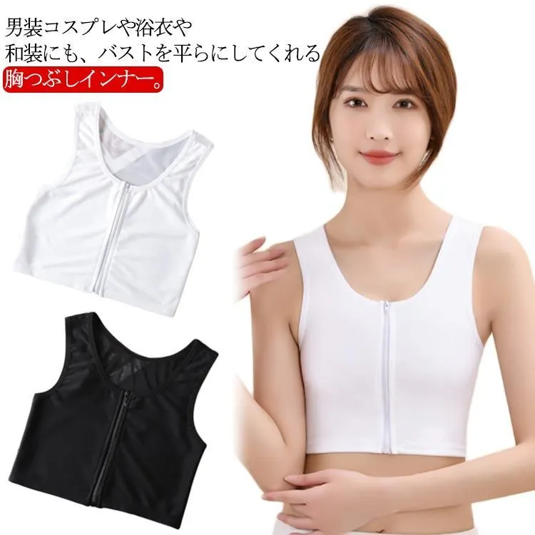 タンクトップ レディース スポーツブラ インナー 胸つぶし 胸を小さく見せる ナベシャツ なべシャツ 男装 ジュニア 大人 フロントジップ 着痩せブラ 和装ブラ ブラトップ