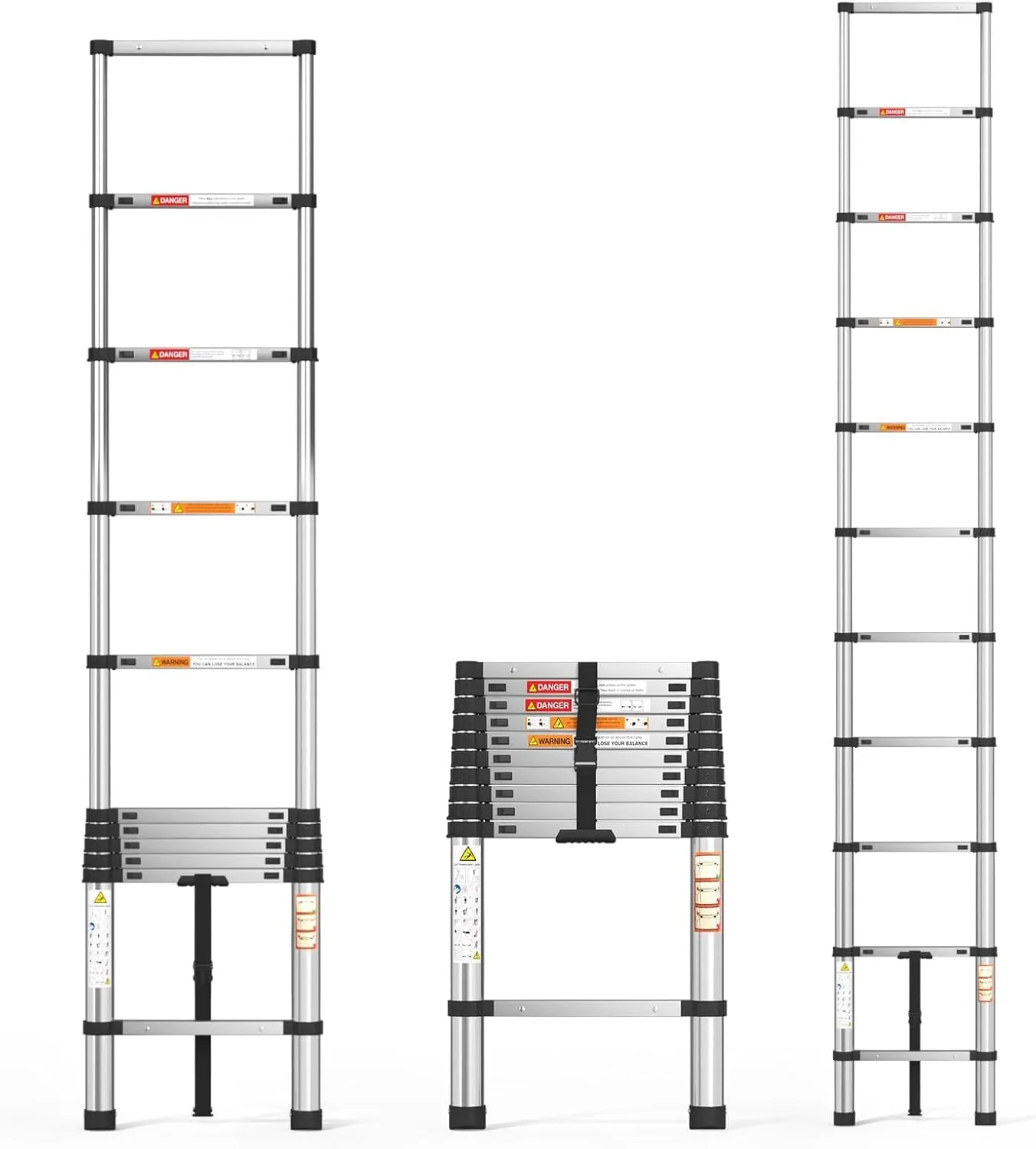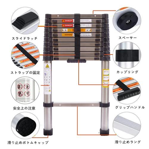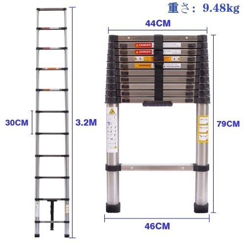 DayPlus 伸縮はしご ステンレス製 3.2m 折り畳み伸縮梯子 持ち運びやすい軽量 多機能 耐荷重150 kg 自動ロック 安全ロック スライド式 ステンレス鋼のはしご 室内室外両用 日本語説明書po