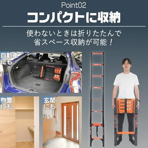 【伸びる、はしご。】 ONE STEP 伸縮はしご 耐荷重150kg スライド式 折りたたみ 安全ロック コンパクト 多機能はしご 持ち運びに便利 軽量 室内 屋外 両用 (2.7m):