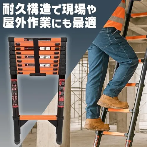 【日本企業】 SKK はしご 2.7m 伸縮 伸縮はしご 耐荷重150kg スライド式 折り畳み 安全ロック コンパクト 持ち運び容易 屋内 屋外 梯子 多機能 スチール:
