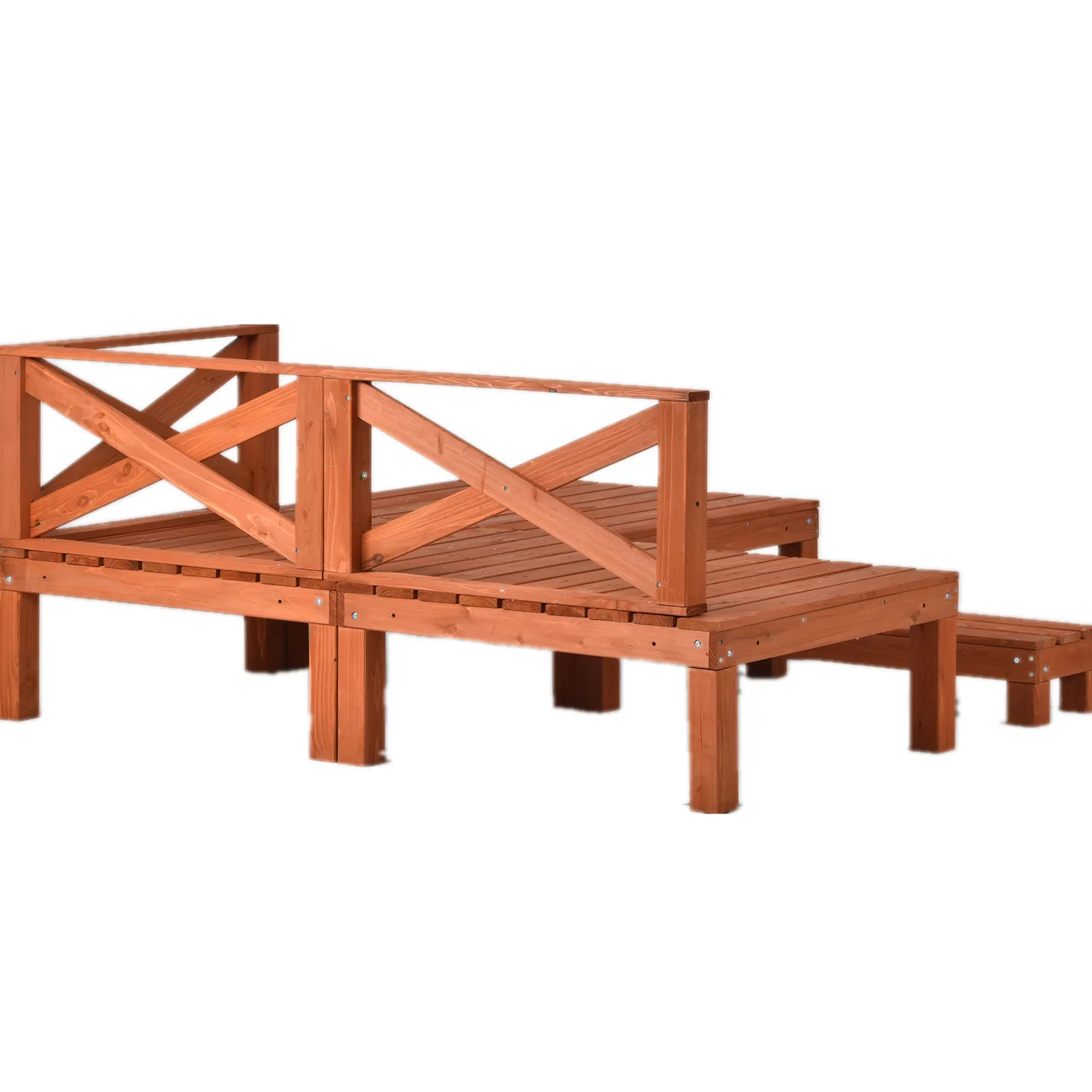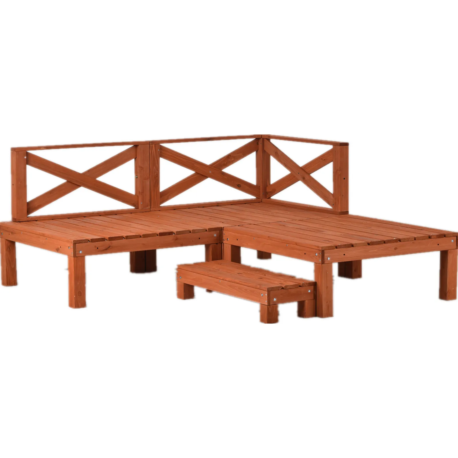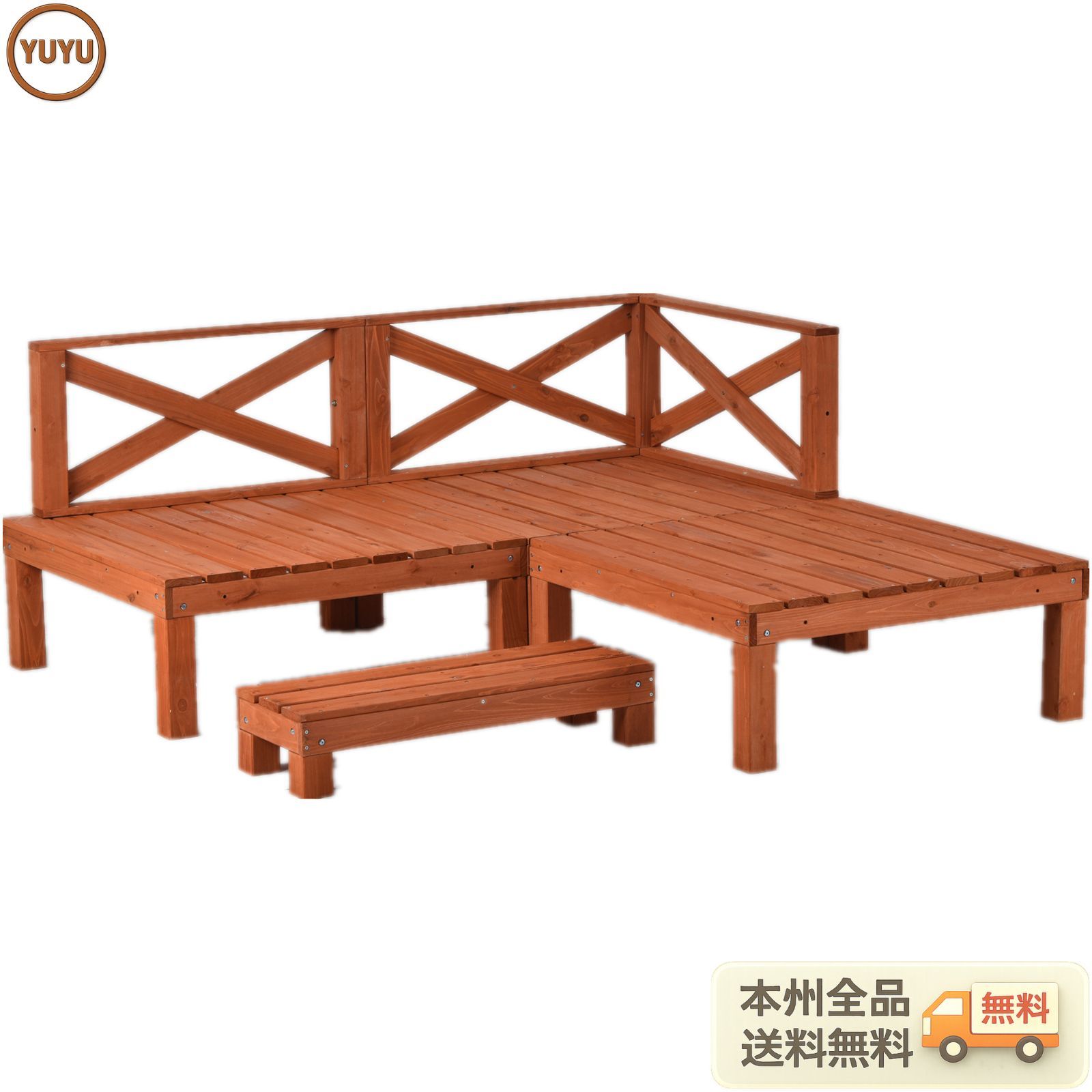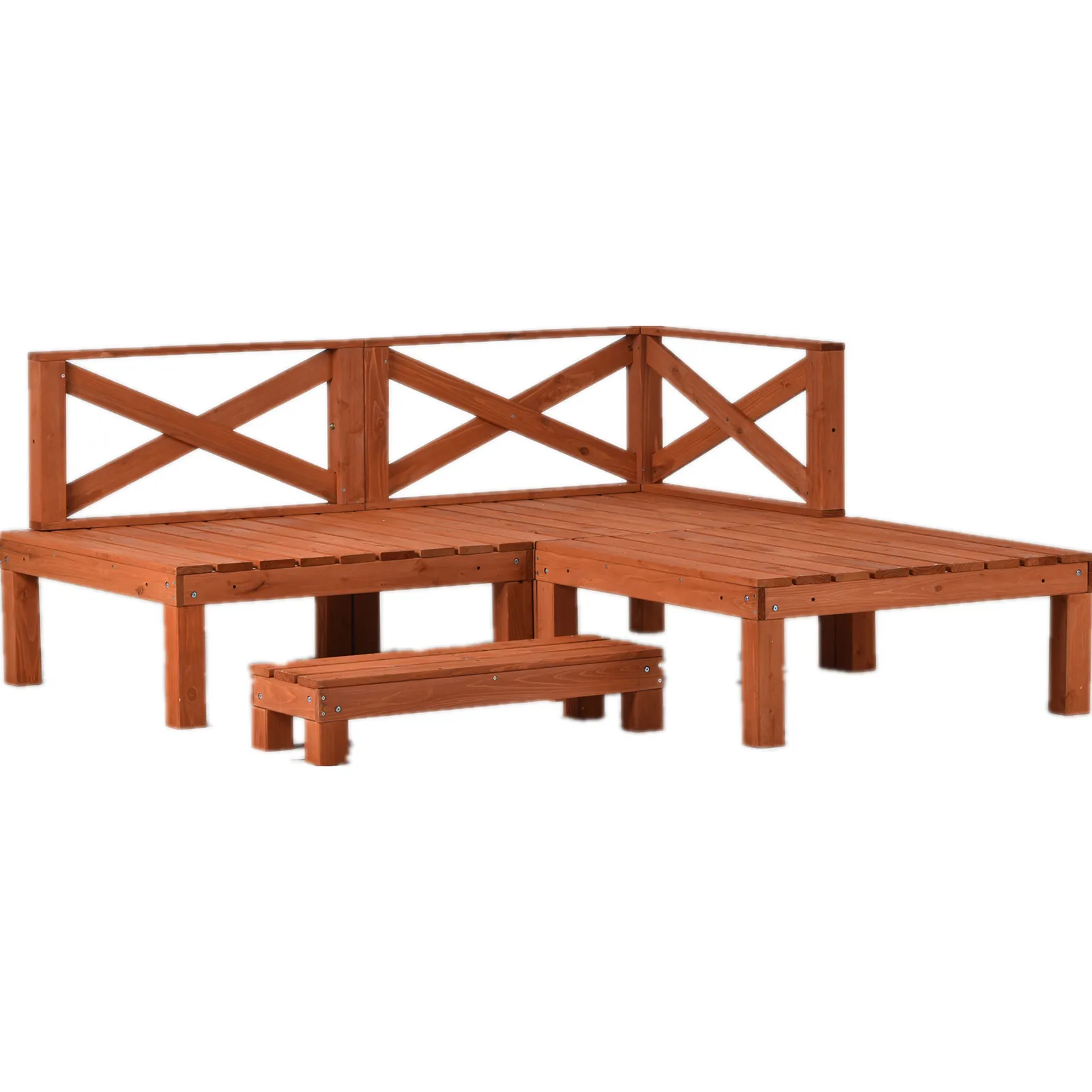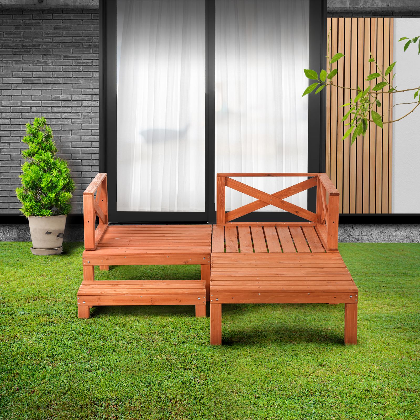 ウッドデッキ 天然木 キット 7点セット 0.5坪 ウッドパネル 家具ガーデンファニチャーバルコニー ベランダ 踏み台付 北欧 キットウッド 新生活【レッドブラウ 【レッド】