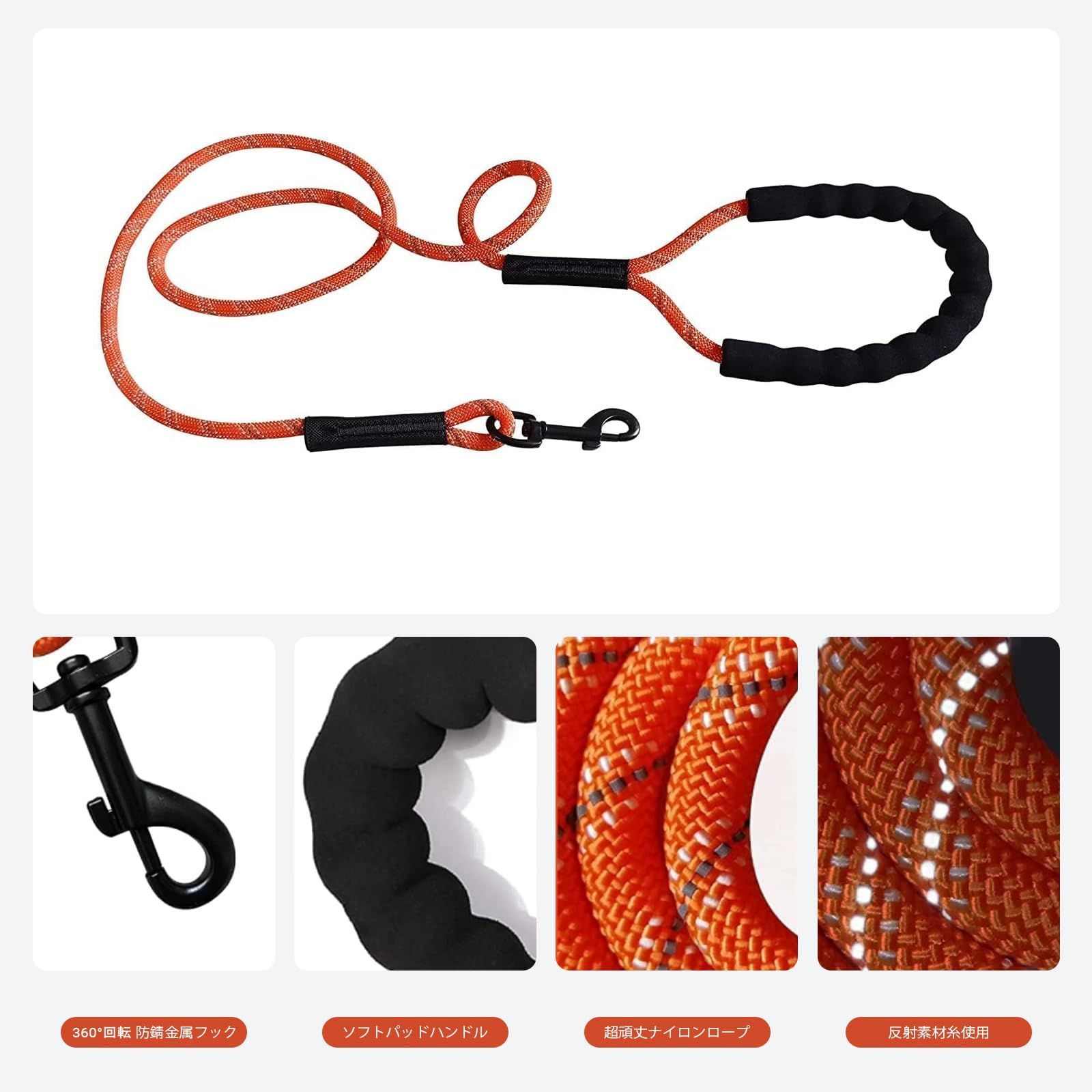 【Flexible Lengths & Vibrant Colors】5/16’’(0.8cm) in diam, 5M(15FT) /10M(30 FT) /15M(50 FT), our training leashes give your dog ample freedom to run and explore without straying too far. These varied lengths ensure a safe and suitable choice for all your dog's activities. Available in striking orange and classic black, these leashes add a dash of personality to your pet's daily outings. ???