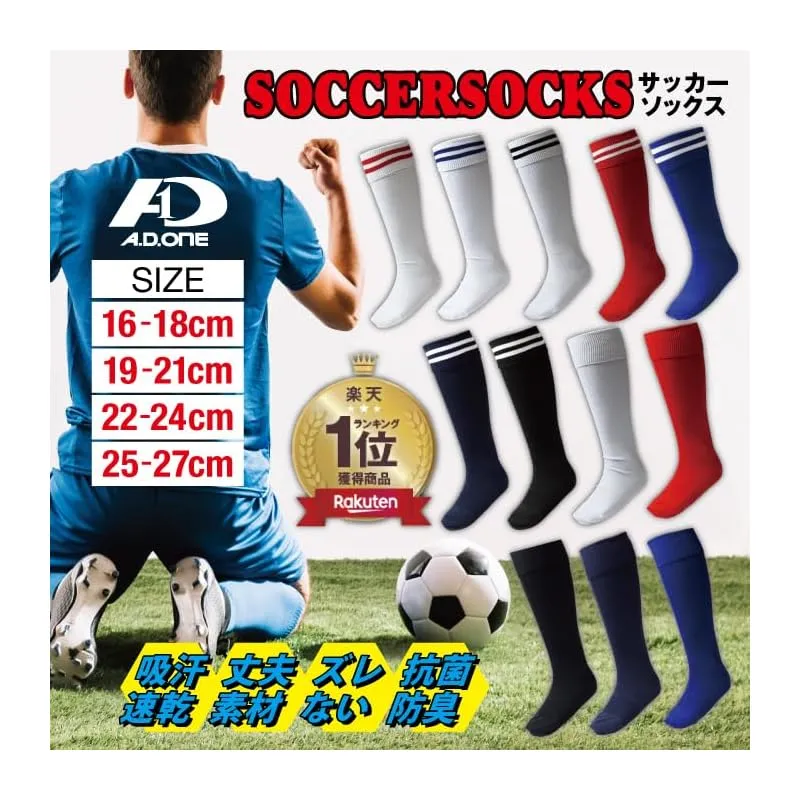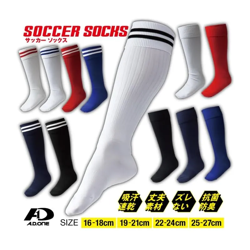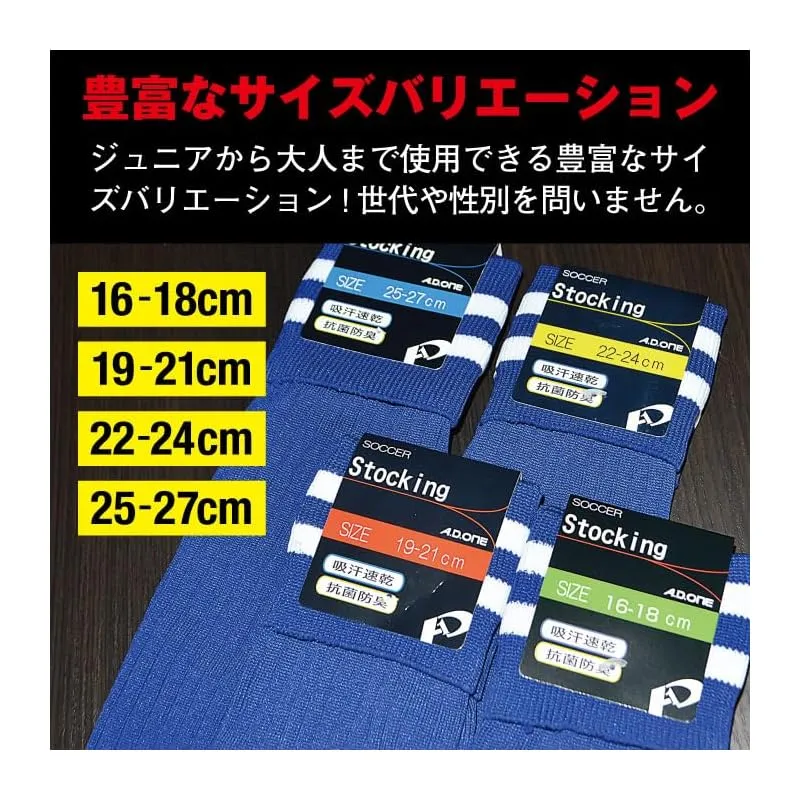 [A.D.ONE] サッカー ソックス フットサル フットボール ストッキング 抗菌防臭 吸汗速乾 メンズ 子供 キッズ ジュニア 靴下 スポーツ ADS ネイビー 25-27cm 1