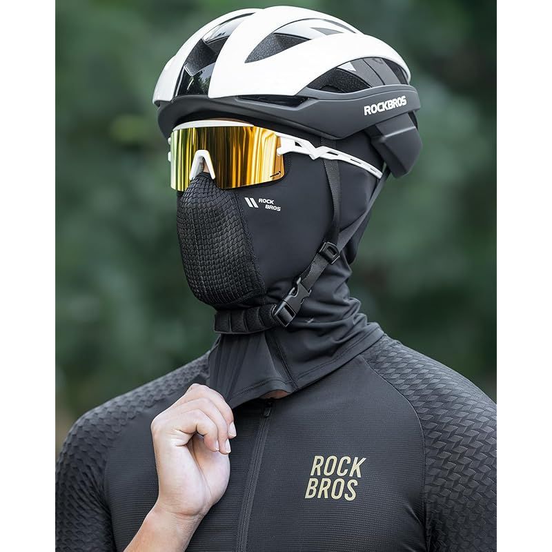 ROCKBROS フェイスカバー 冷感 バラクラバ uvカット 息苦しくない 通気性 吸汗速乾 ストレッチ性 目出し帽 自転車 バイク ランニング ジョギング スポーツ 登山 釣り 夏用 (口元メッシュ ブラック) 1