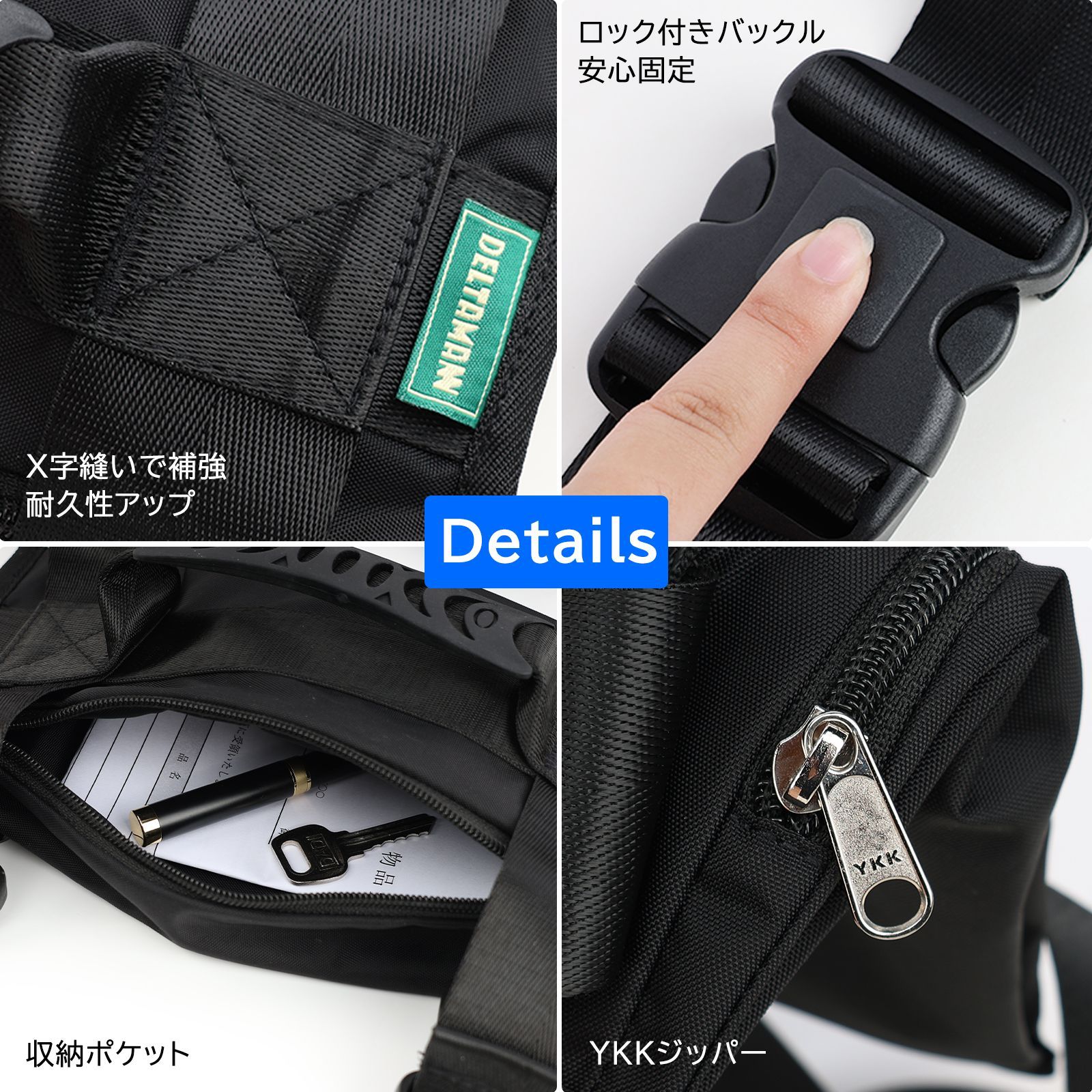 【ストラップ長さ自由調整】 荷物の大きさに合わせてベルトの長さを自由に調整可能。小物から大きめのアイテムまでしっかりフィットし、安定して固定できます。
