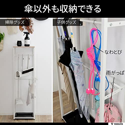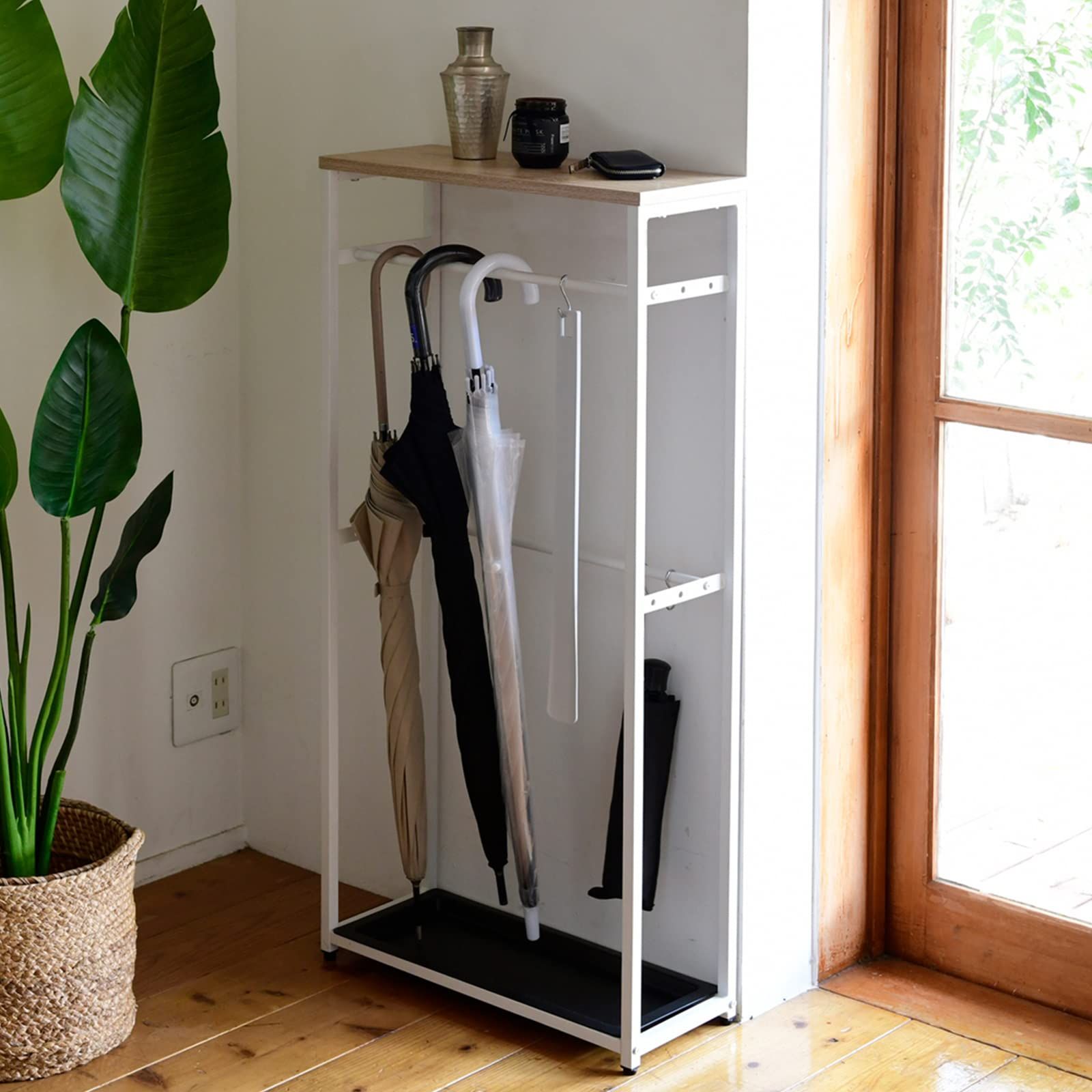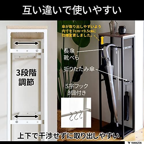 山善(YAMAZEN) 傘立て (傘かけ) 玄関 スリム 【70cm傘対応】 幅50×奥行20×高さ103cm S字フック3個 2段 バーの奥行が変えられる(3段階) 組立品 ナチュラル/マットホワイト RUS-50(NA2/MWH)po