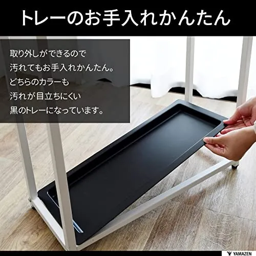 【お手入れしやすいトレー】トレーは取り外すことができるので、汚れが目立ってきたら取り外してかんたんにお手入れすることができます。 本体サイズ:幅50奥行20高さ103cmポール上までの高さ内寸 : 約89cm幅内寸 : 45.5cm上部ポールから天板までの高さ内寸 : 9.5cm付属品:取扱・組立説明書、S字フック3個