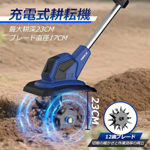 【2025新型】NANWEI コードレス耕運機 充電式耕うん機 マキタ18Vバッテリー対応 電動ミニ耕運機 耕幅200mm 耕深230mm 折りたたみ式 小型 軽量 静音 収納便利 組み立て簡単 家庭菜園 水田畑 (本体のみ)po