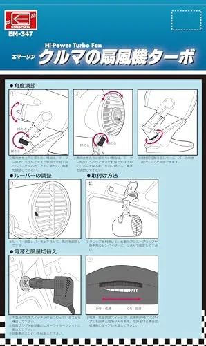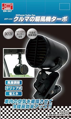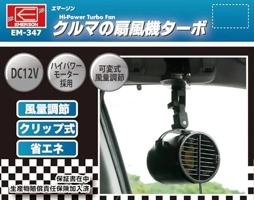 エマーソン(Emerson) 車内用扇風機 ターボファン DC12V クリップ式 ハイパワーモーター採用 大風量 可変式風量調節 可変角度調整 省エネ 車内の空気を循環させて冷暖房効率アップ ルーバー付き EM-347po