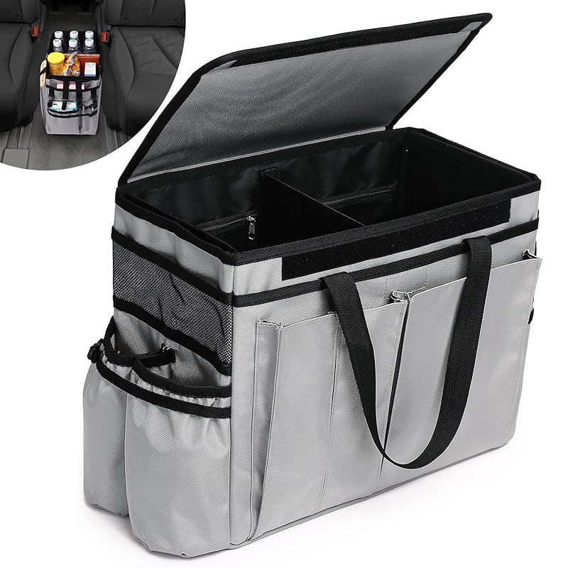 Topshine 車用 トランク 収納ボックス 大容量 折り畳み キャンプ ラゲッジルーム 蓋付き 小物整理 仕切り コンソールボックス アウトドア 車載 転落防止 容量25L 15個のポケット付き 滑り止め (グレー) 0