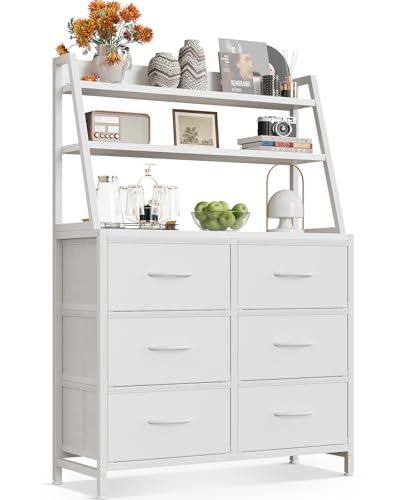 AODK 棚 収納 ラック付きチェスト タンス 大容量 幅80×奥行き30cm たんす 洋服タンス リビング収納 布製引き出し 衣装ケース 転倒防止 安定感 おしゃれ 6段6杯 ホワイト