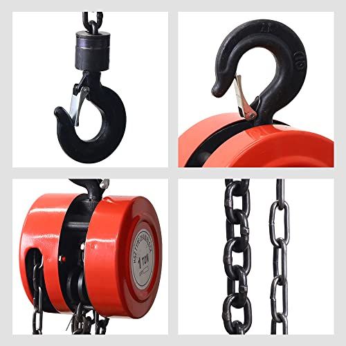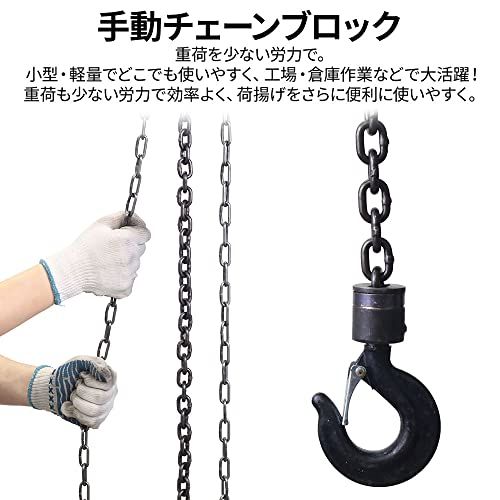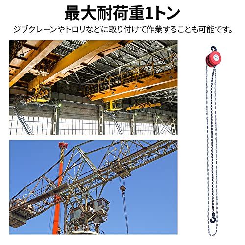 iimono117 チェーンブロック 最大耐荷重 1トン 荷揚げ 滑車 鎖 重量物 チェンブロック ウインチ 吊り上げ クレーンフック 工場 倉庫作業 (1t 手動 2.5m)