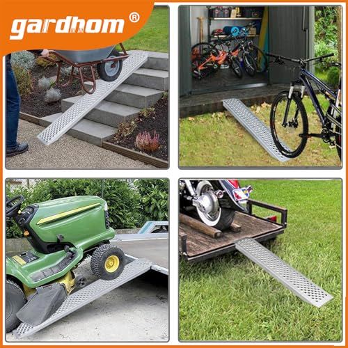 バイクアルミラダーレール 120CM, gardhom アルミブリッジ 幅広 21.5CM 自転車 オートバイク適用 段差解消40CMラダーレール 四輪バギー 草刈り機 除雪機用 2本セット 荷重680KG