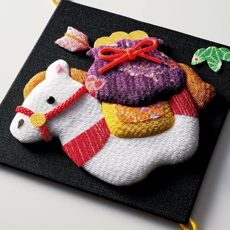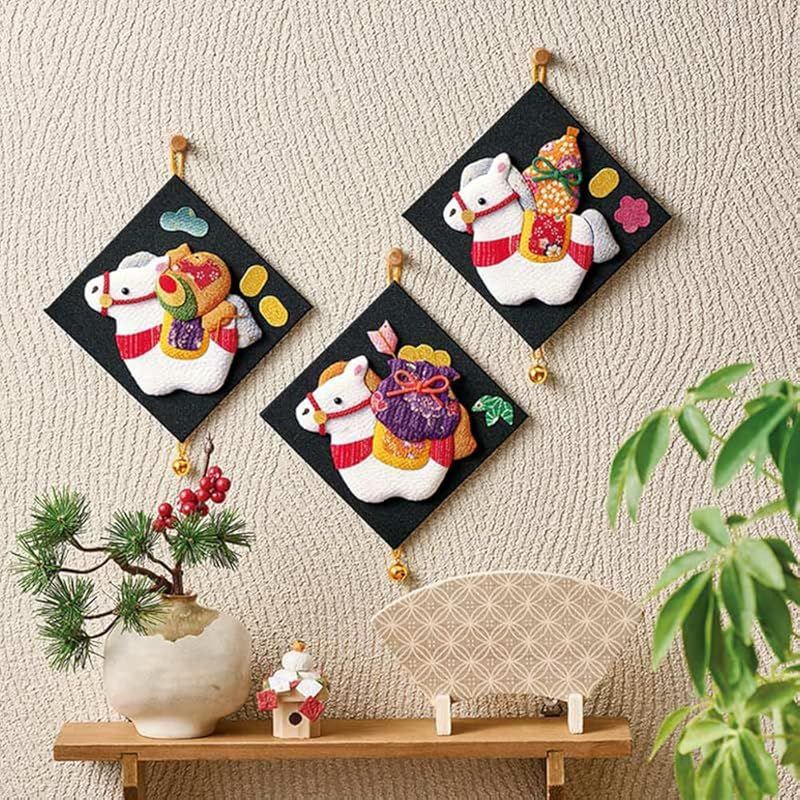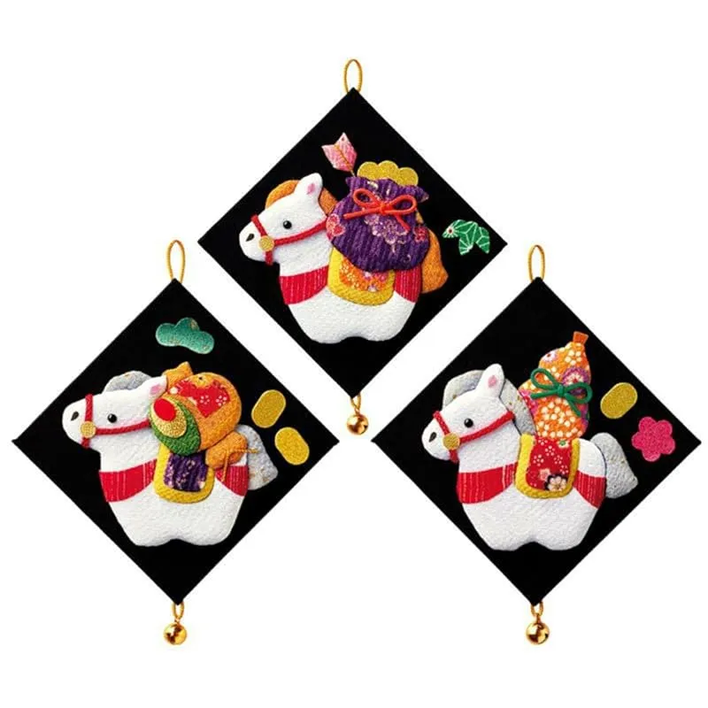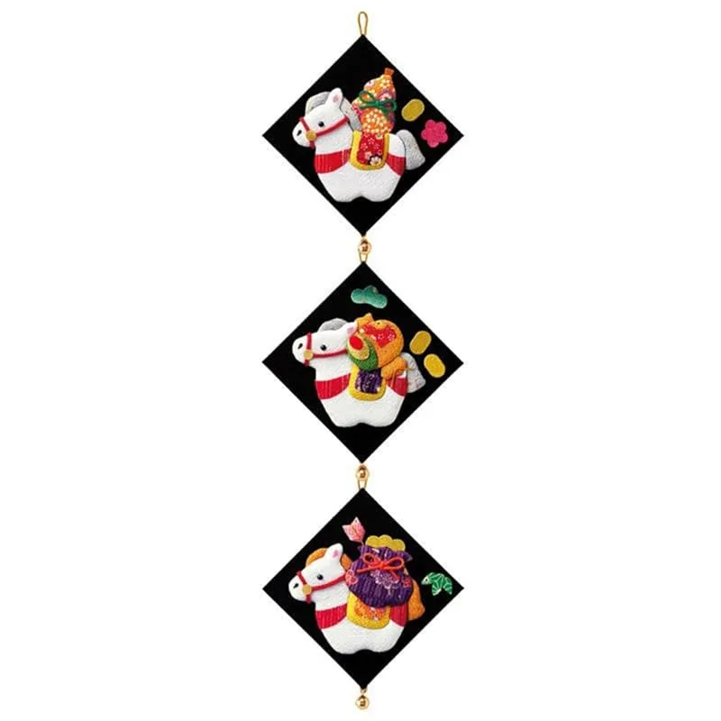 【新品】 さくらほりきり 【正月飾り】 2026年[午年]えとシリーズ 三連タペストリー 縦48×横14.3cm 0