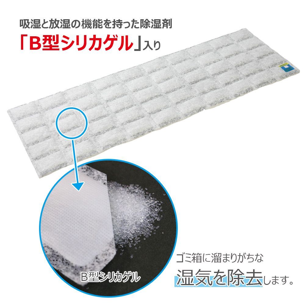 ●B型シリカゲルがゴミ箱内の湿気を除去します。