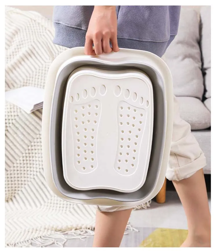 足湯 バケツ 折り畳み ピンク フットバス フットボウル ボウル 足浴器 足湯バケツ 折り畳みバケツ 足浴 温熱 むくみ 改善 対策 フットケア 角質除去 リラックス 足裏 突起 折りたたみ 足湯器 #kaka2093